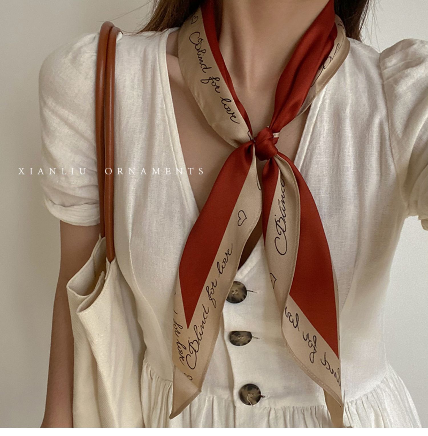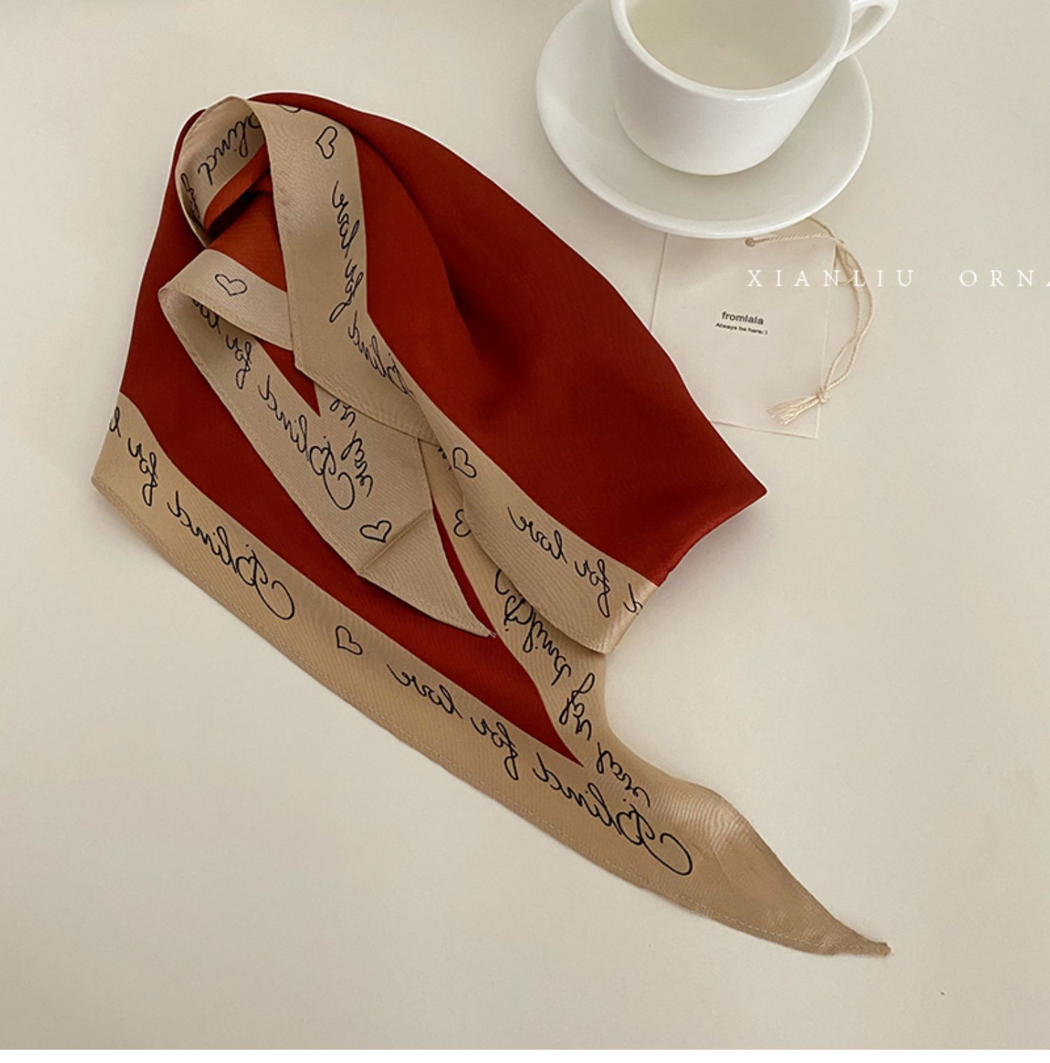 • 갈색 글자 - 실크 스카프