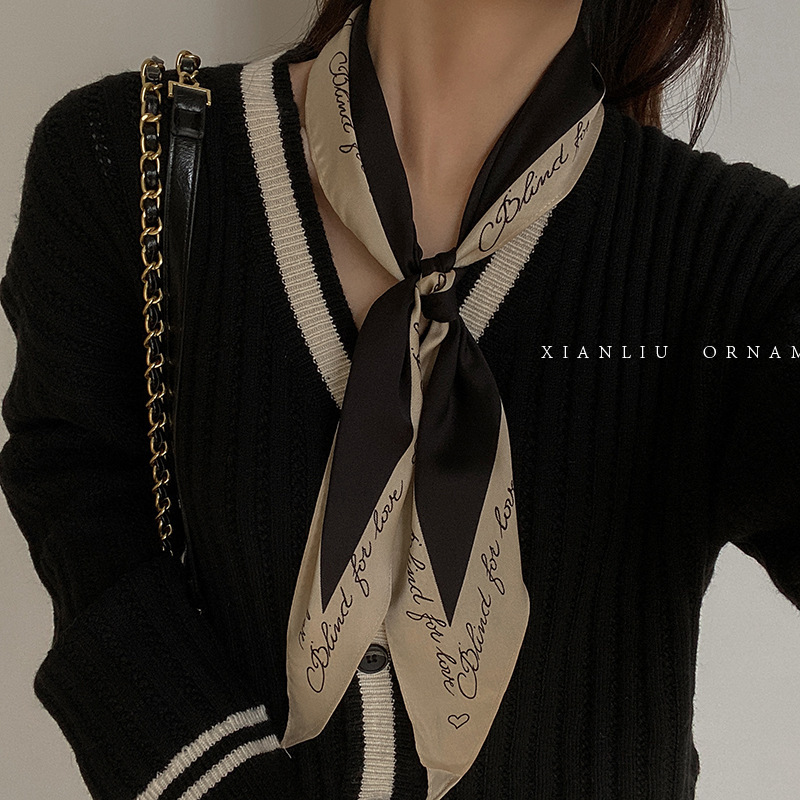 여성을 위한 새로운 능직 문자 마름모 작은 실크 스카프, 봄과 가을 패션 장식, 다용도 전문 스카프, 한국 스타일 스카프, 다양한 스타일스토어 가기