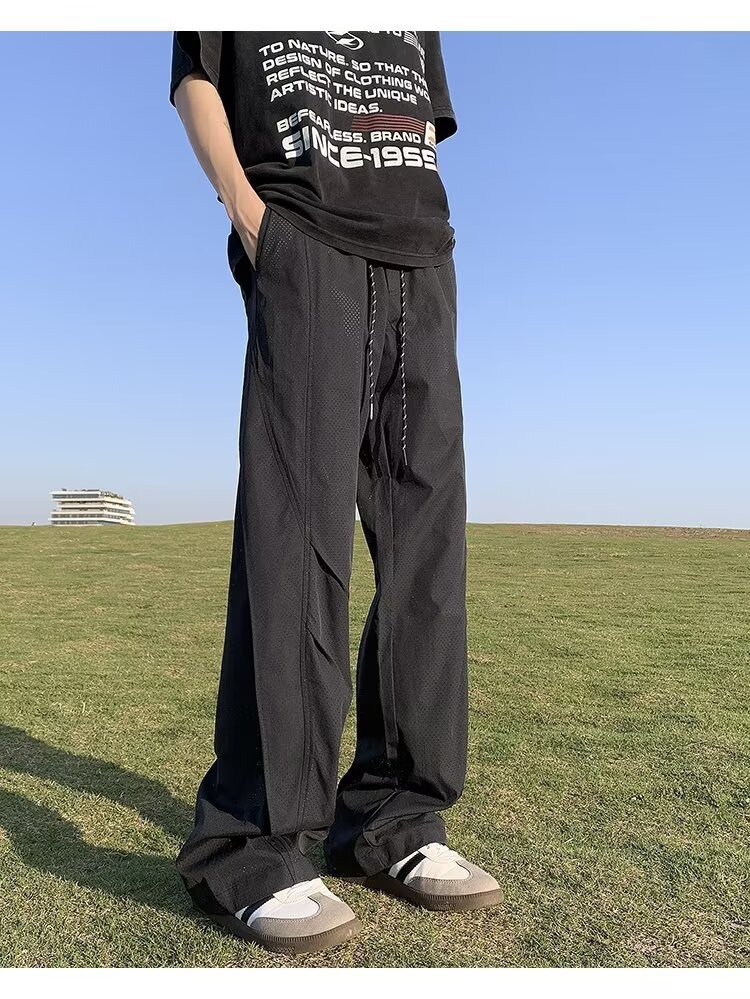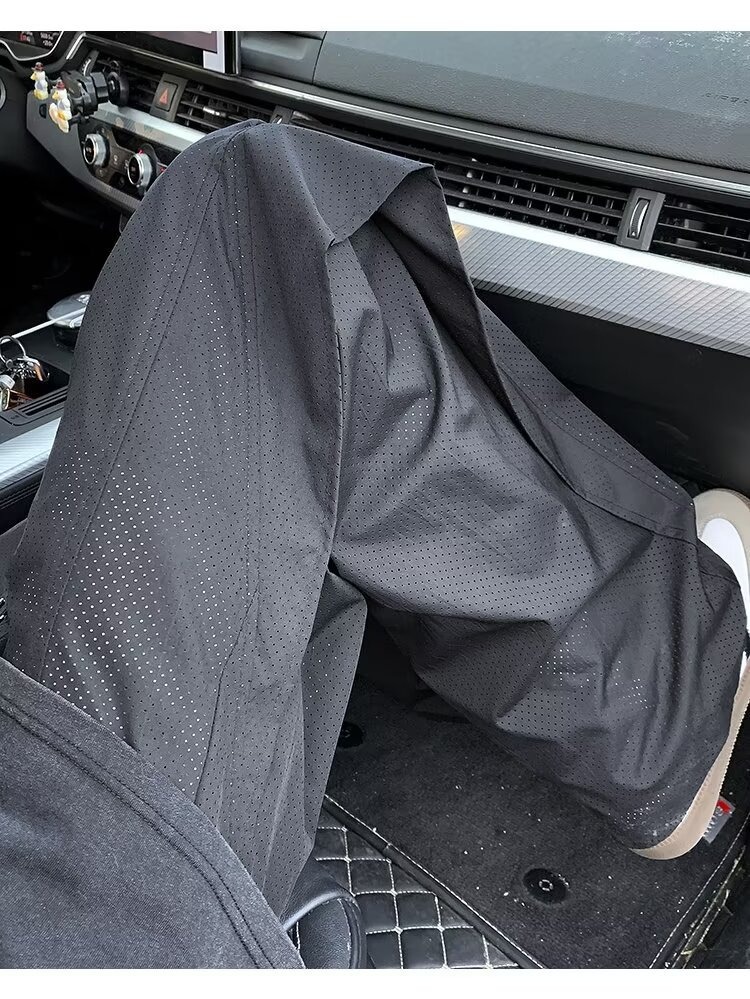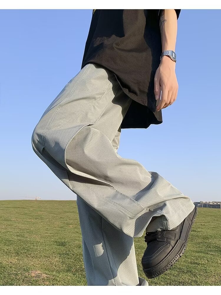 여름용 남성용 라이트 그레이 메쉬 아이스 실크 팬츠 얇은 아웃도어 작업복 아메리칸 스타일 기능성 세이버 마이크로 플레어 팬츠