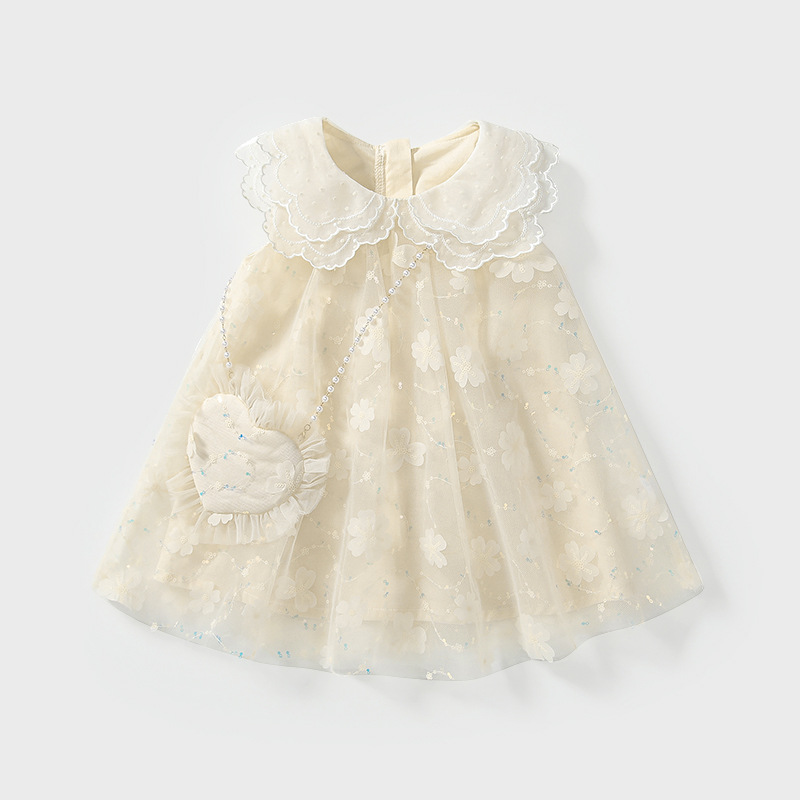 여자 25 년 새로운 원피스 어린이 높은 단색 여름 메쉬 자수 공주 원피스 소녀 한국어 버전 도매스토어 가기