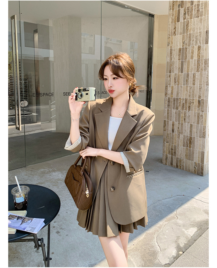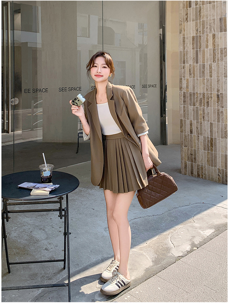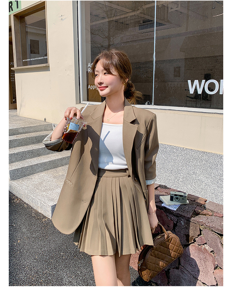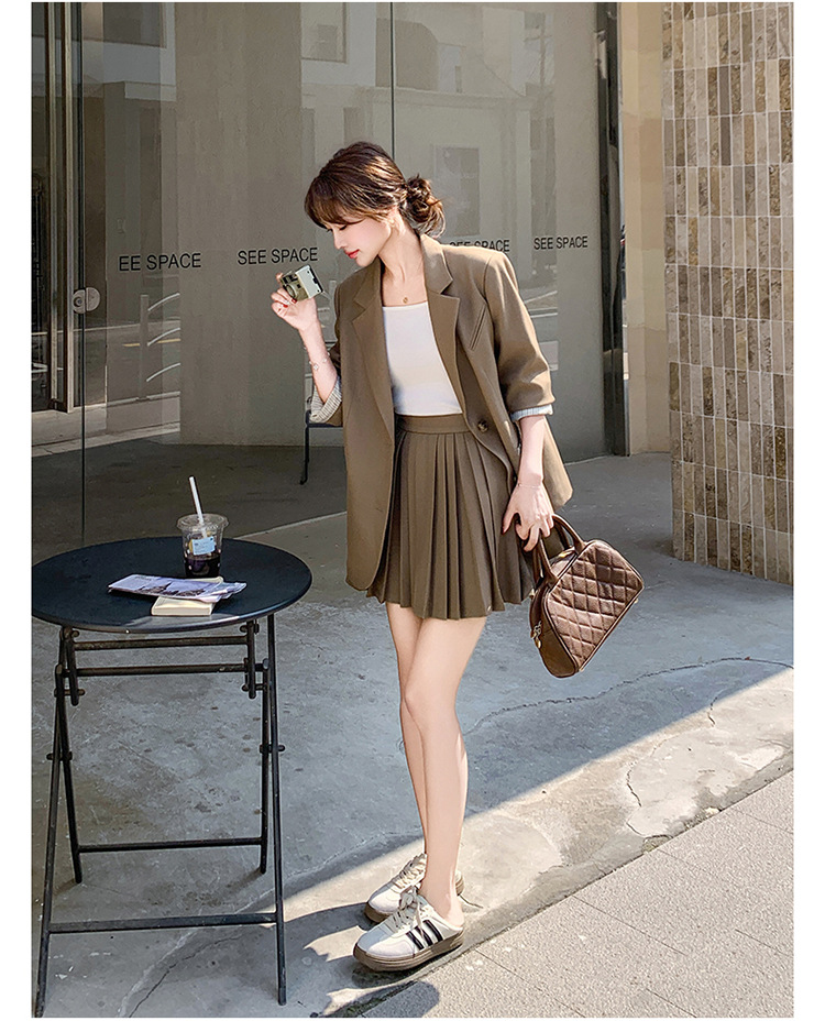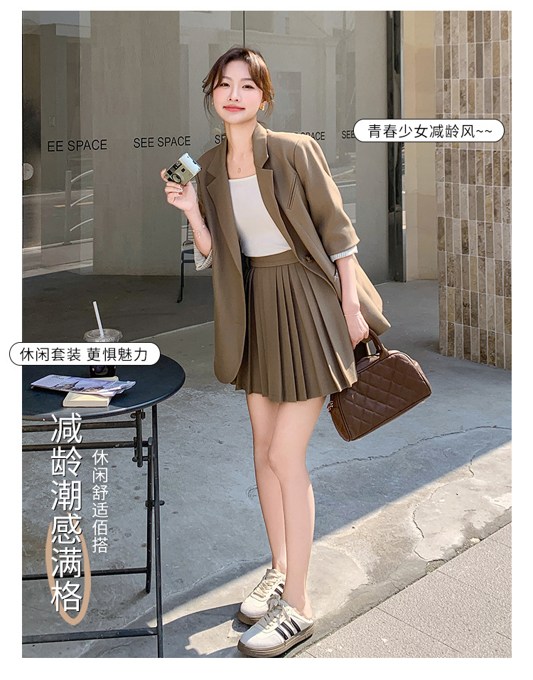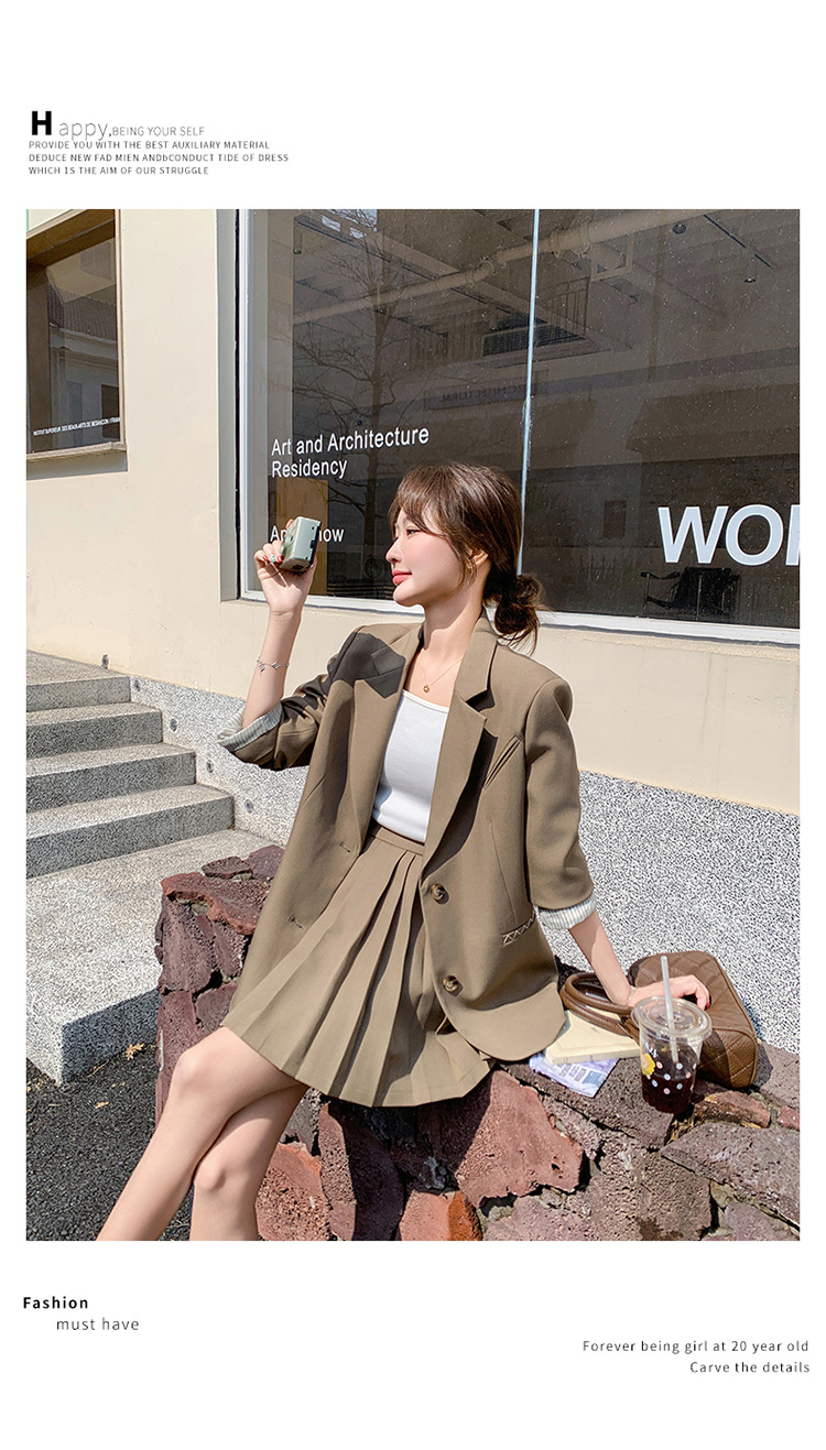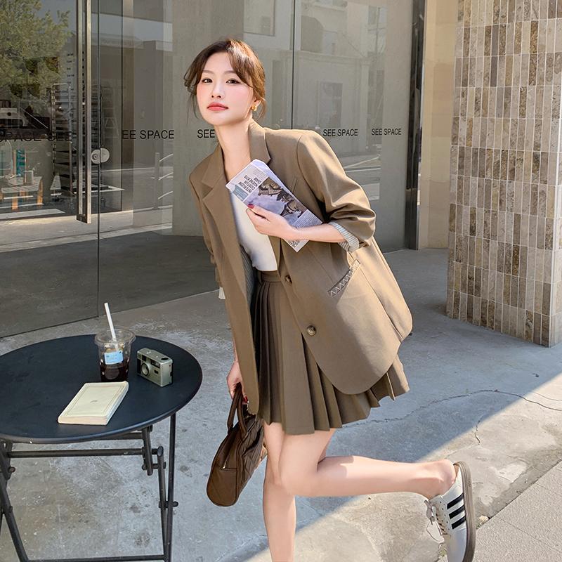 소금 달콤한 스타일 착용 패션 레트로 세트 여성의 봄 새로운 하이 엔드 주름 짧은 치마 투피스 세트 세트스토어 가기