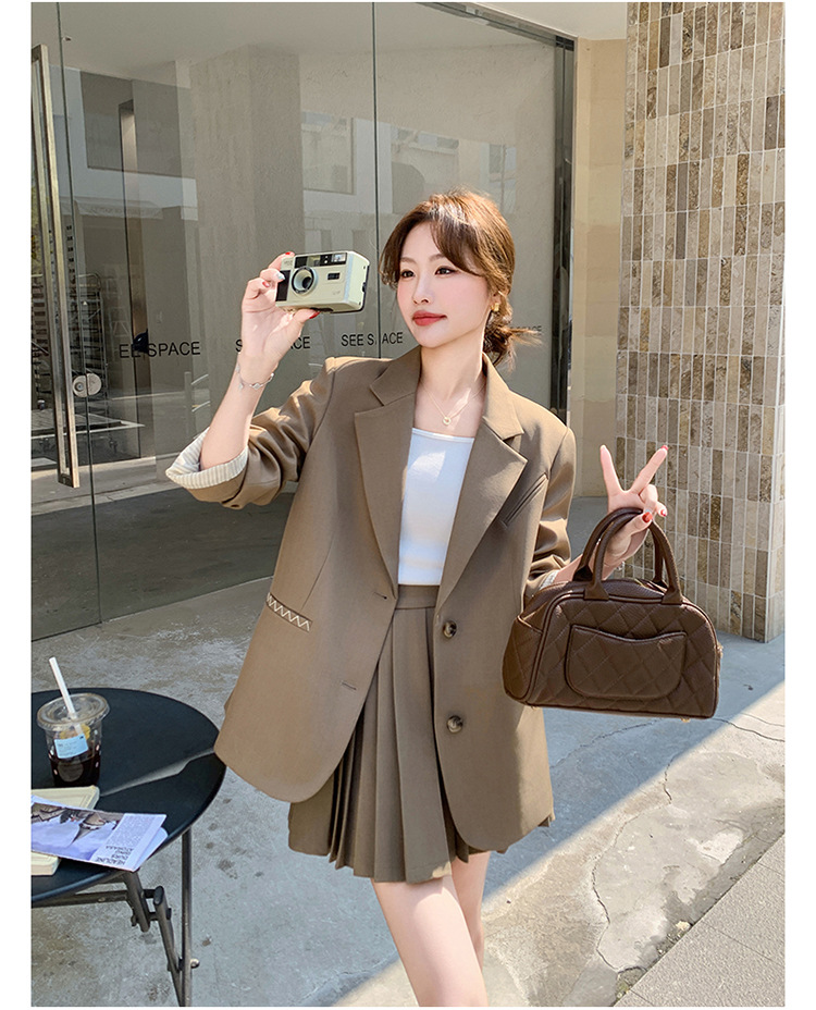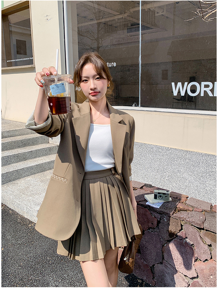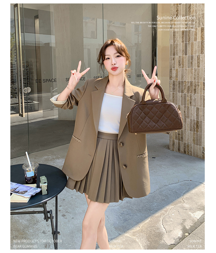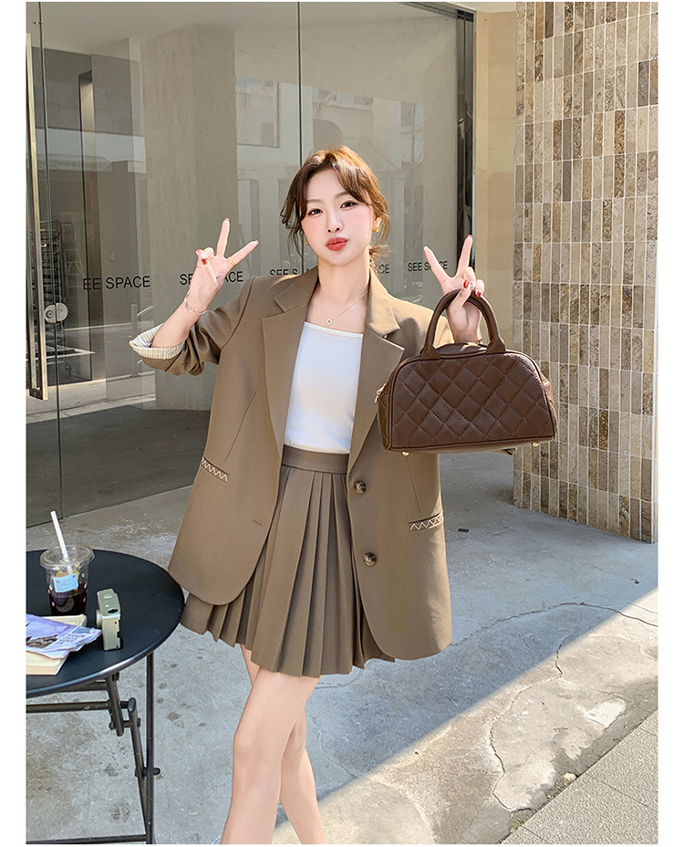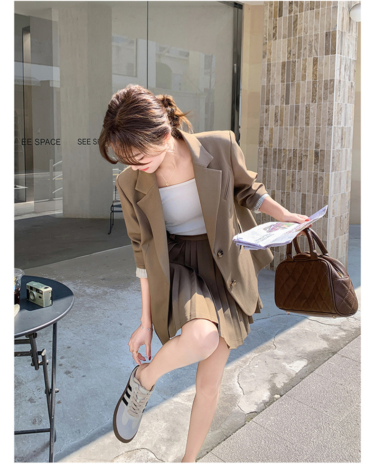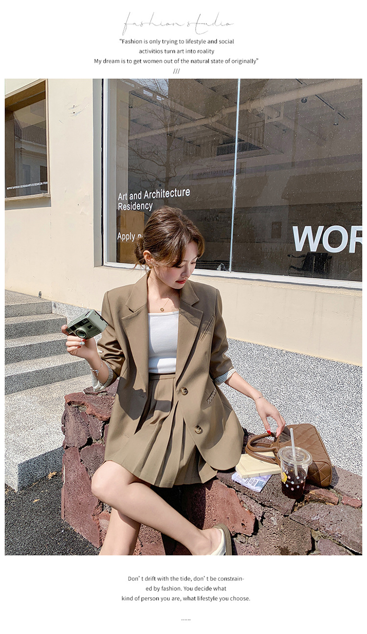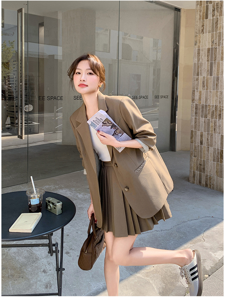 소금 달콤한 스타일 착용 패션 레트로 세트 여성의 봄 새로운 하이 엔드 주름 짧은 치마 투피스 세트 세트스토어 가기