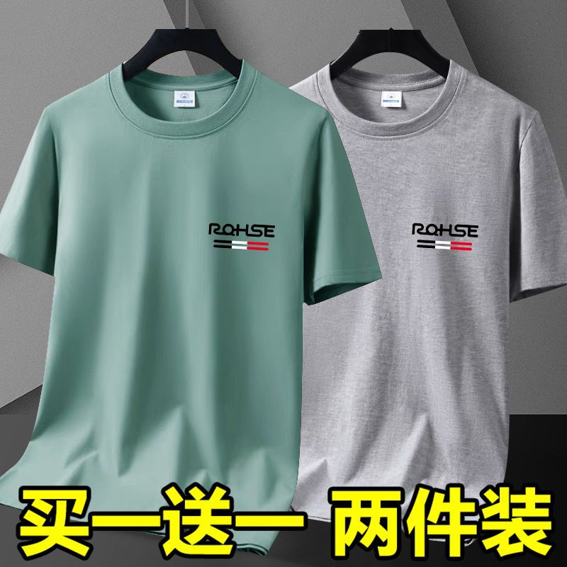 여름 퓨어 코튼 반팔 티셔츠 남성용 루즈 라운드 넥 프린트 반소매 남성용 탑베이스 셔츠 트렌디 T스토어 가기
