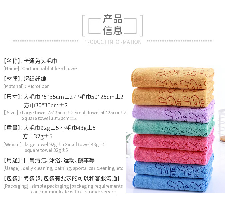 만화 인쇄 토끼 머리 흡수 수건 도매 로고 유치원 작은 사각형 아마존 공급은 마오 마오를 떨어 뜨리지 않습니다스토어 가기