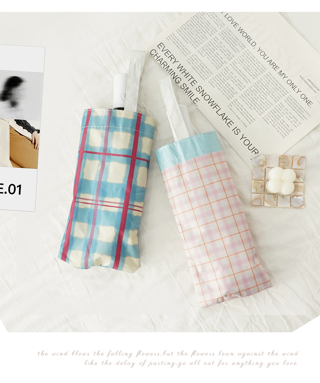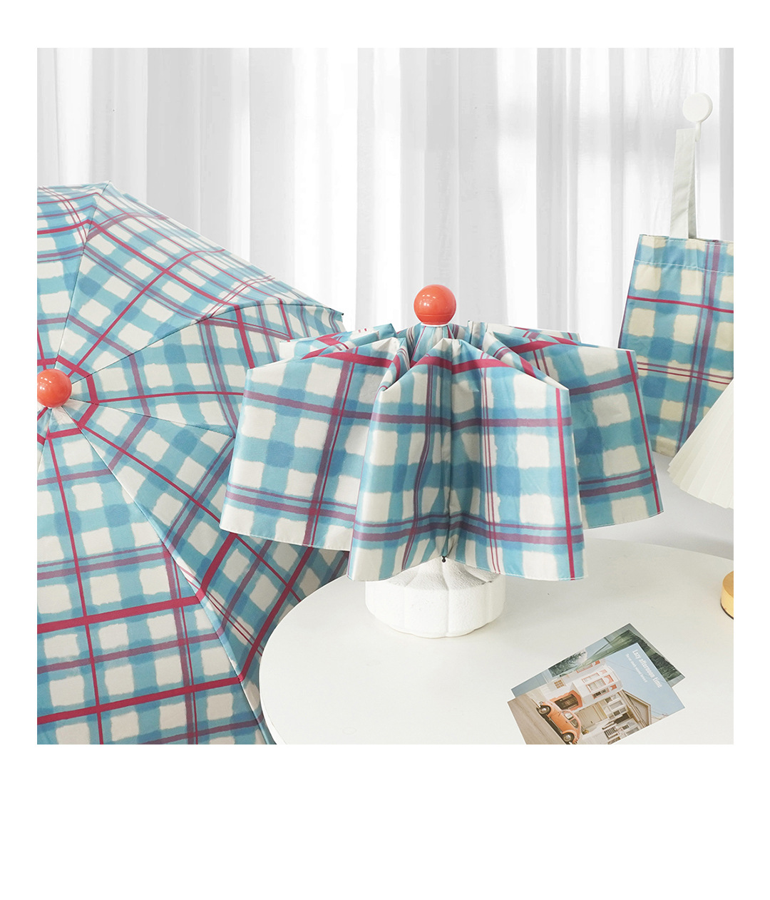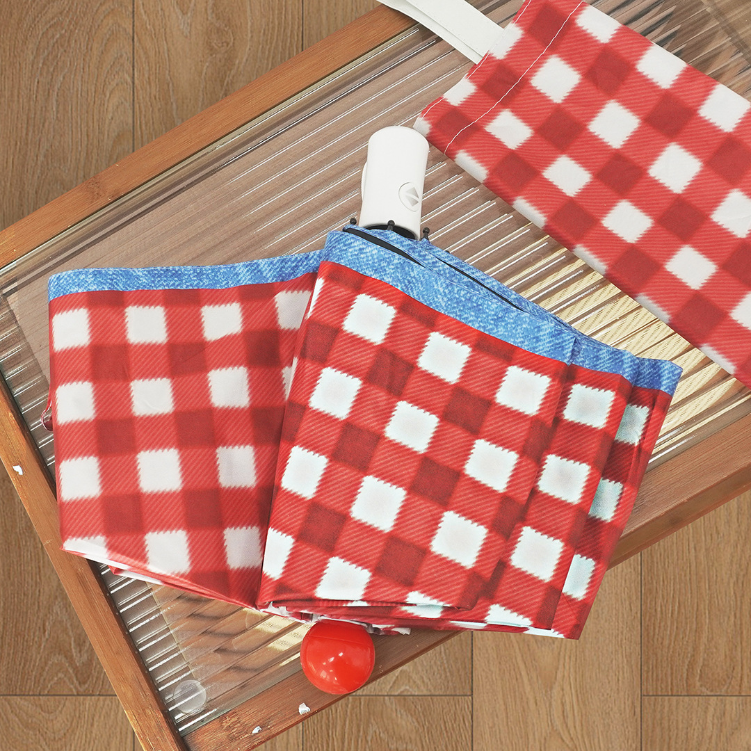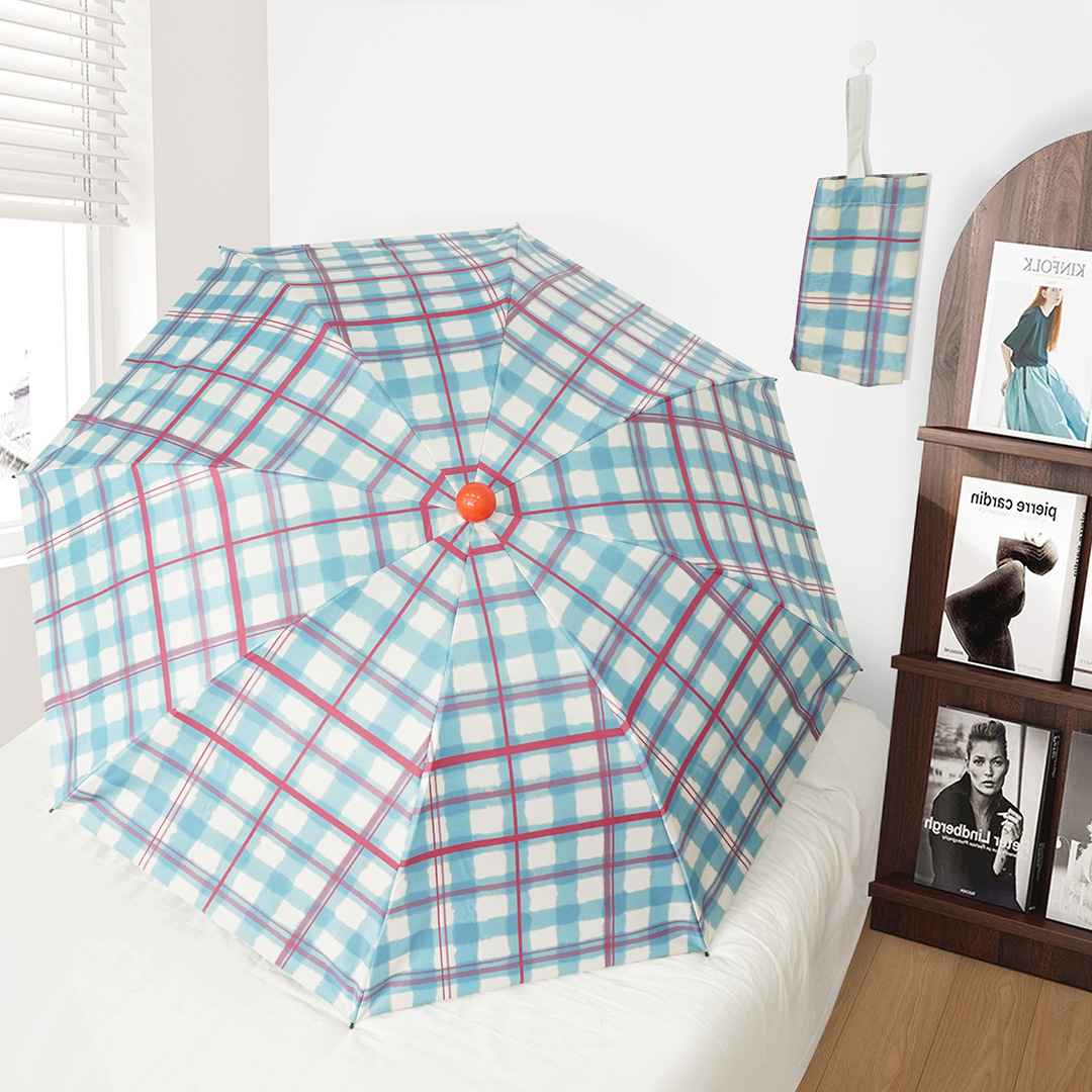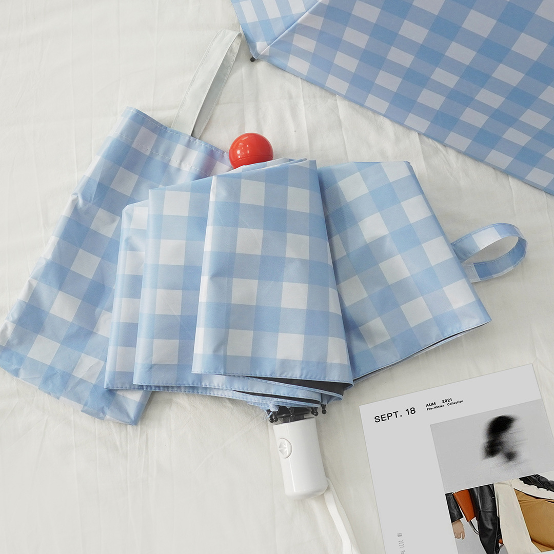 Ins 스타일 틈새 격자 무늬 완전 자동 이중 사용 맑고 비오는 높은 가치의 여성 햇빛 선 스크린 학생 접는 태양 우산스토어 가기