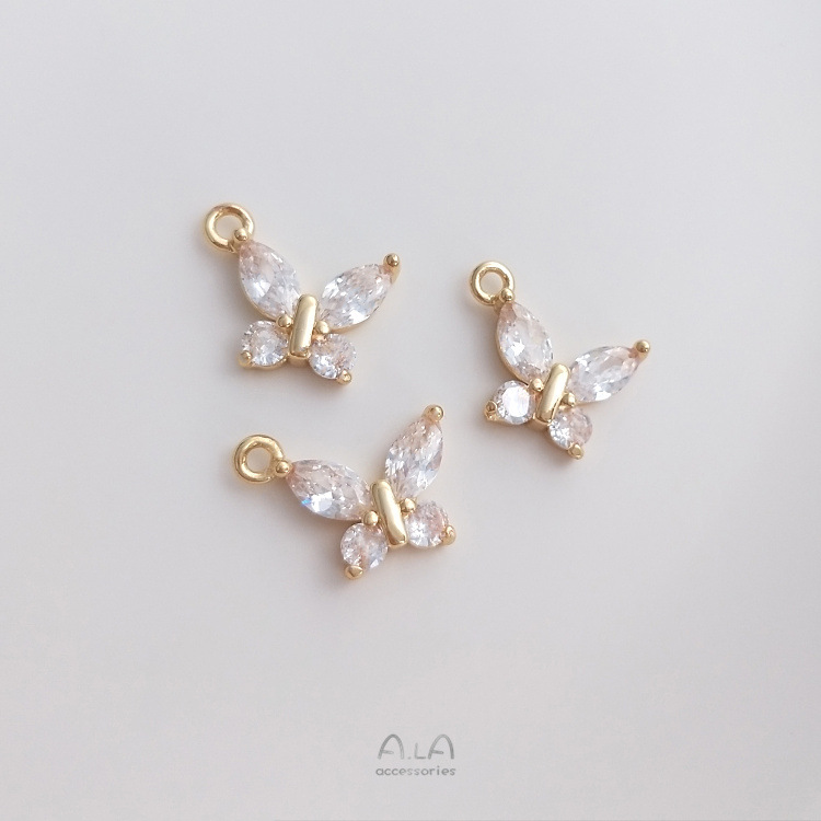14K 금으로 채워진 색상 보존 지르콘 더블 펜던트 작은 나비 펜던트 싱글 펜던트 보우 diy 팔찌 쥬얼리 귀걸이 펜던트