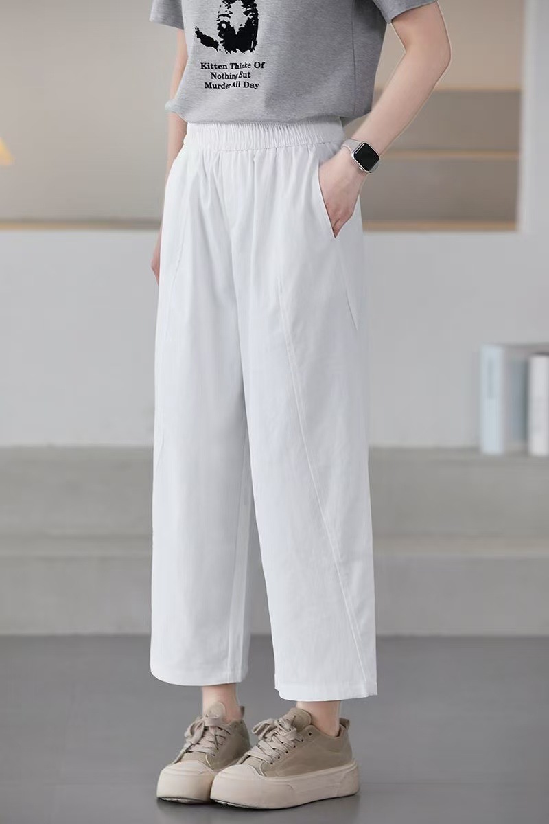 여름 얇은 하렘 바지 여성 탄성 허리 캐주얼 느슨한 슬림 한국 스타일 바지 8637