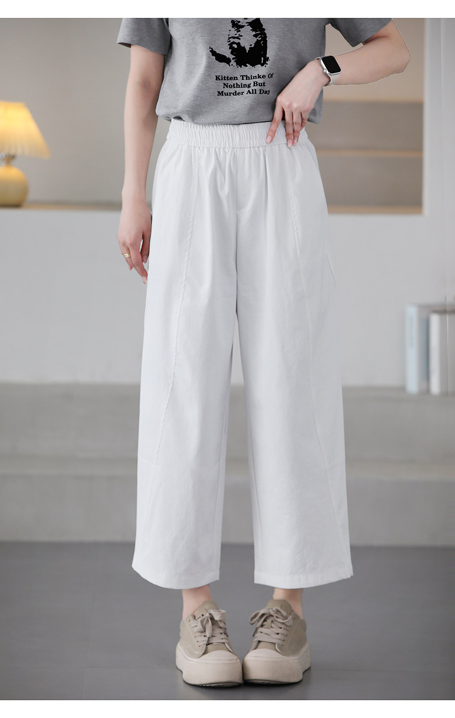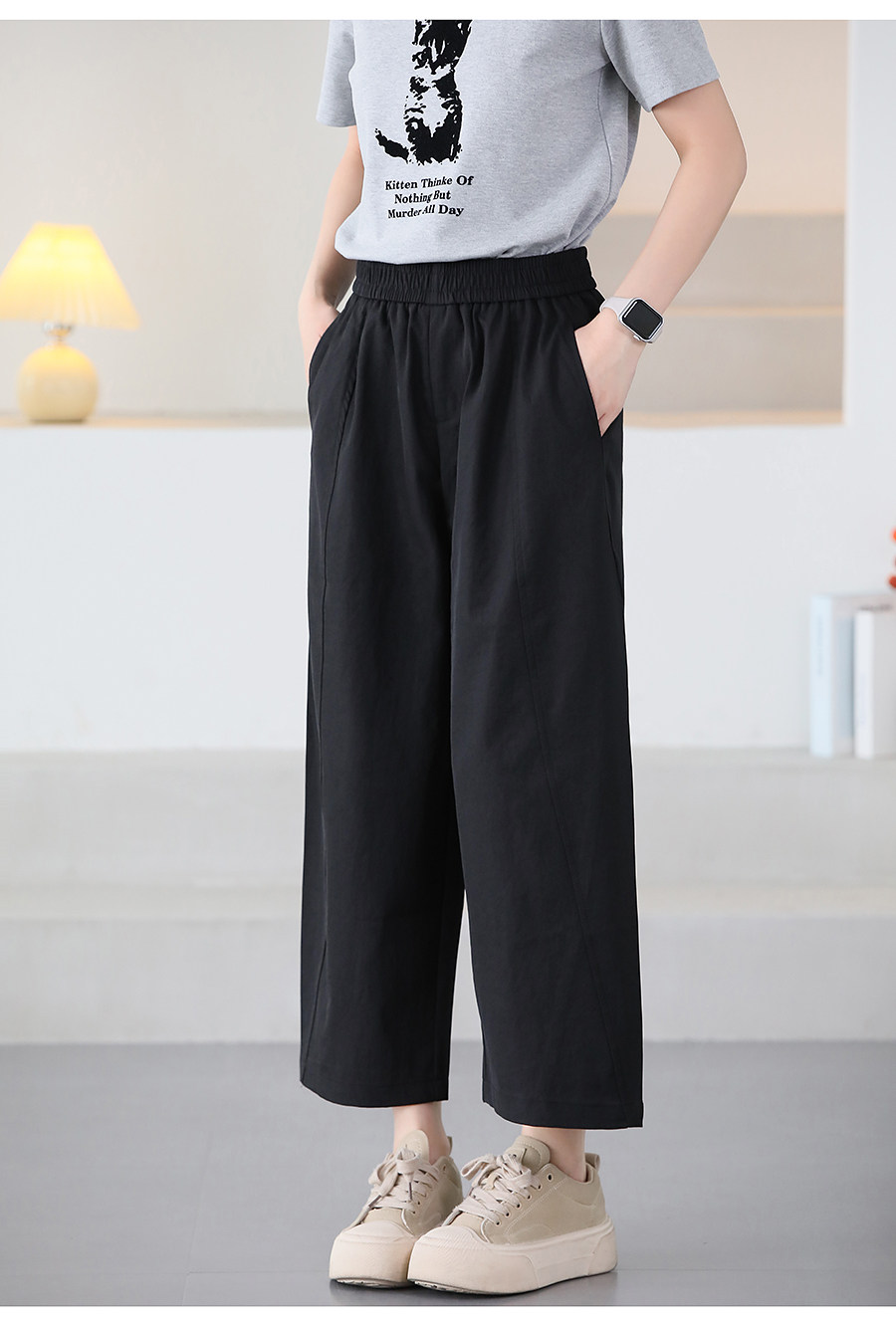 여름 얇은 하렘 바지 여성 탄성 허리 캐주얼 느슨한 슬림 한국 스타일 바지 8637스토어 가기