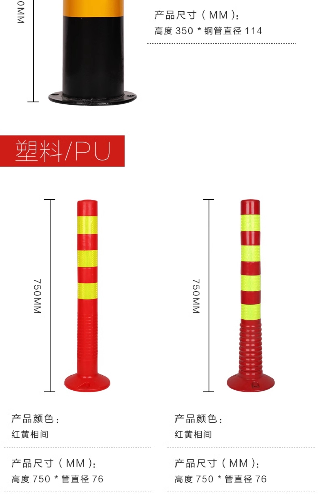 • 상단 링 + 나사가 없는 노란색 및 검정색 기둥 76*750*1.5
