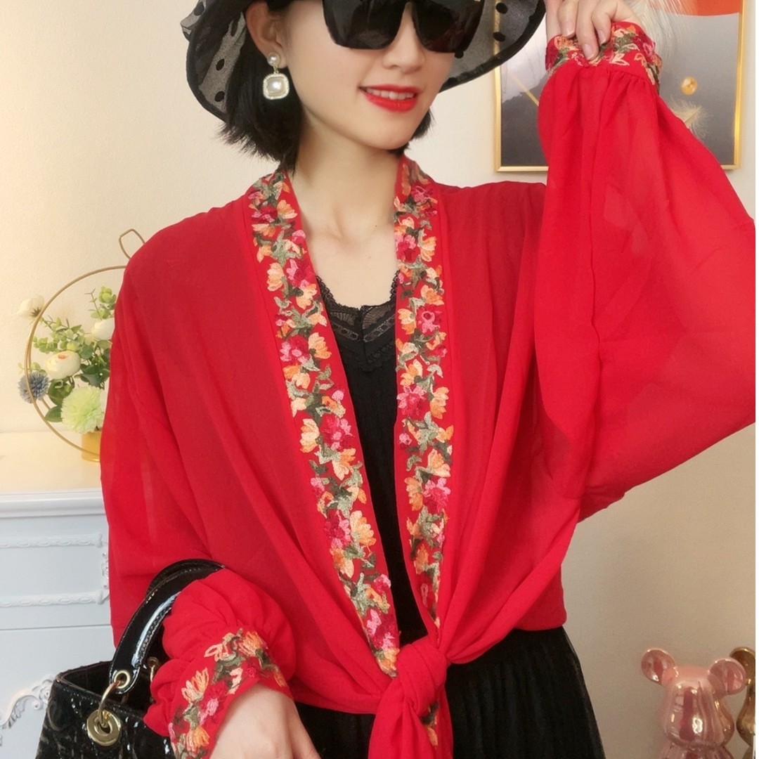 [부티크 자수 목도리] 새로운 쉬폰 목도리 자수 목도리 와이드 소매 패션 조커 선 스크린 목도리 외국 스타일