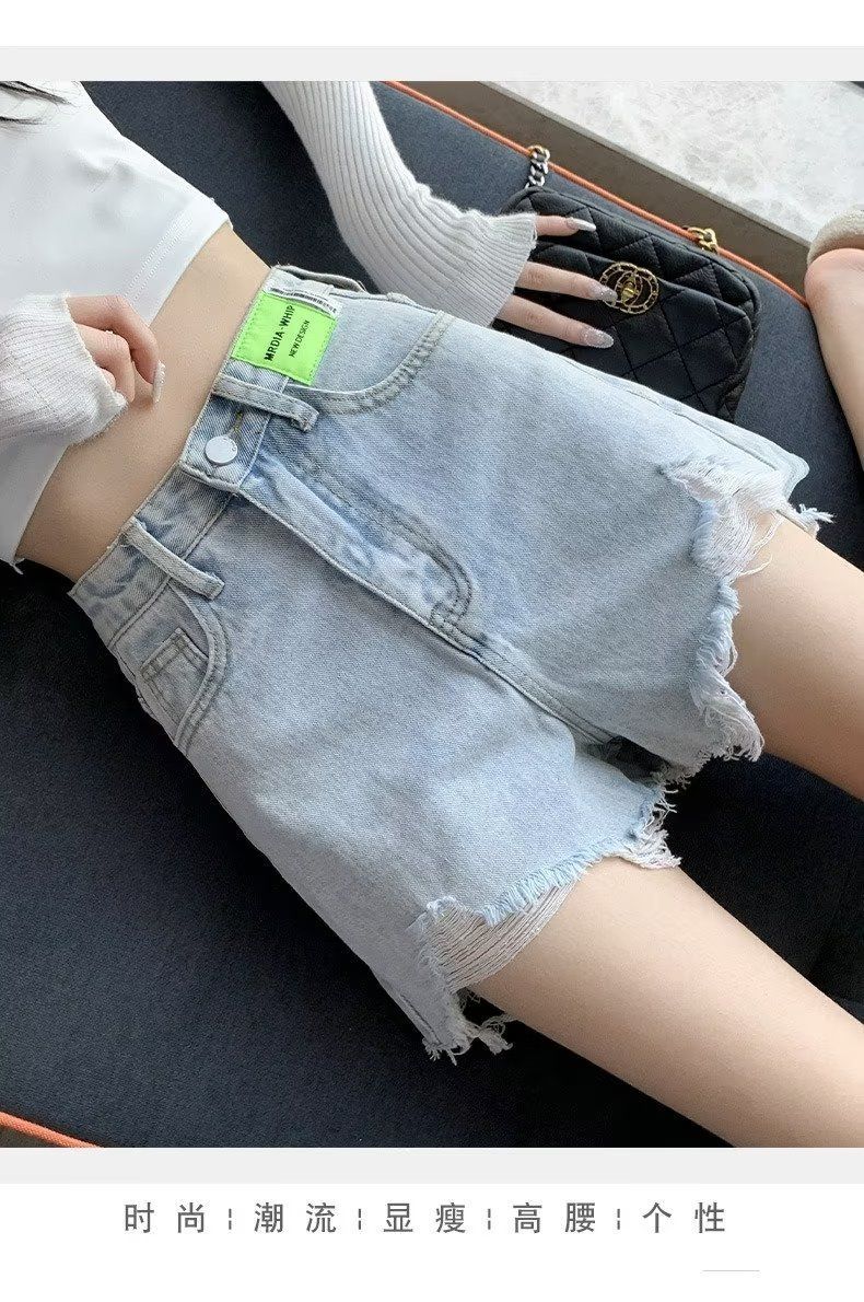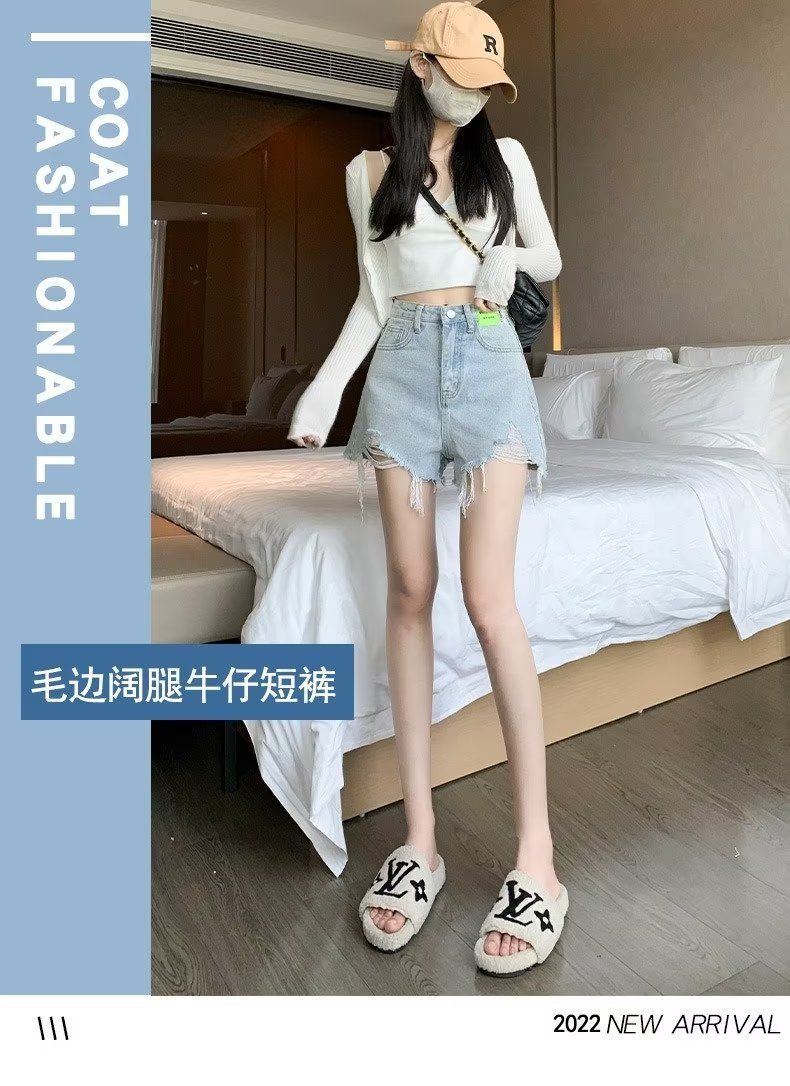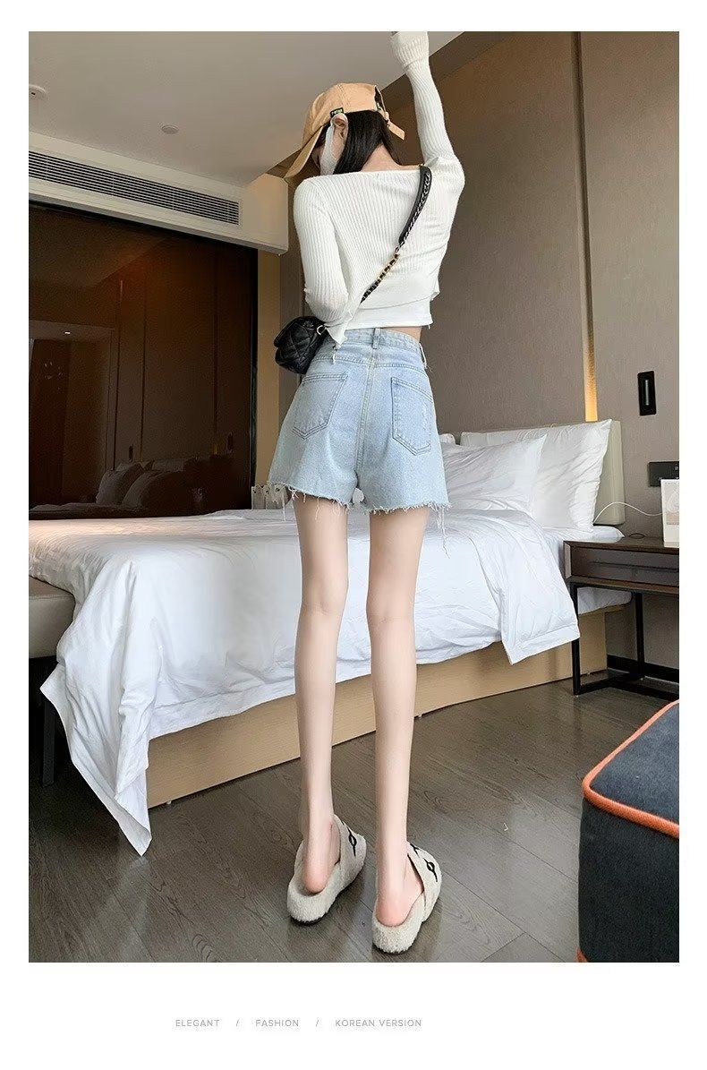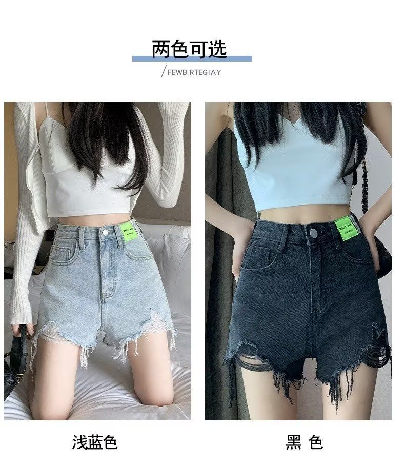 검은 데님 반바지 여성 모피 가장자리 높은 허리 여름 2025 새로운 A-단어 슬리밍 핫 바지스토어 가기