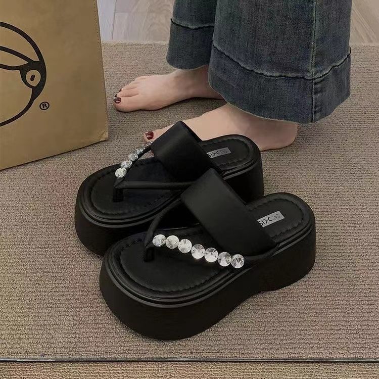 2025년 여름 신작 여성용 요정 스타일 비치 슬리퍼, 두꺼운 밑창 슬리퍼, 작은 사람들을 위한 아름다운 여름 아우터 샌들