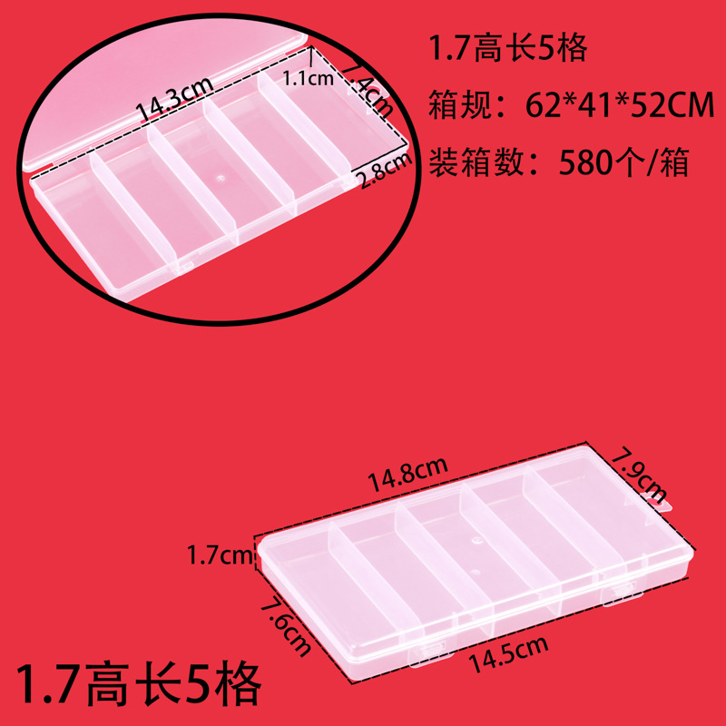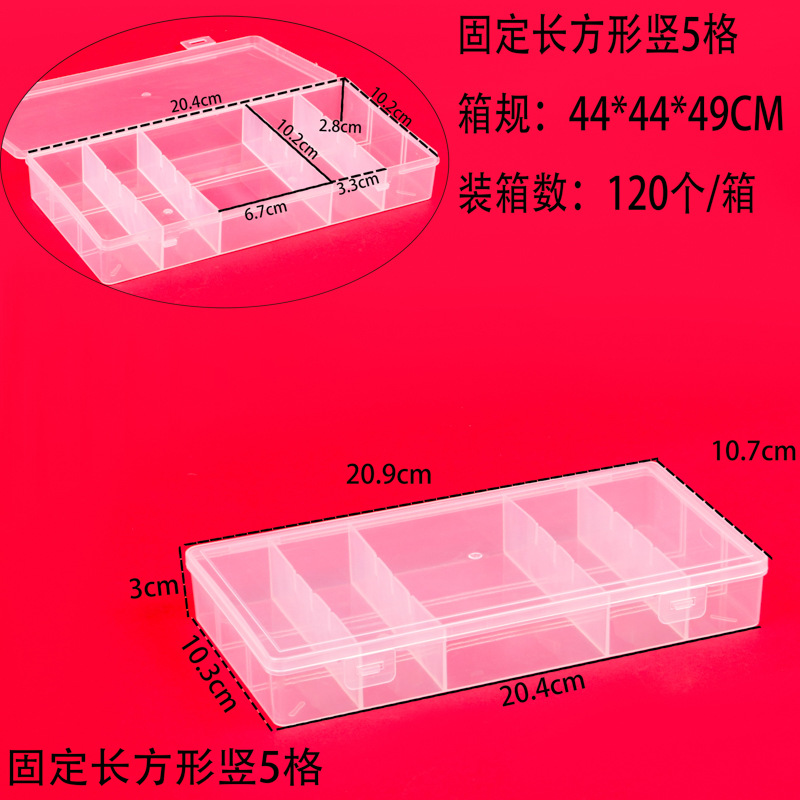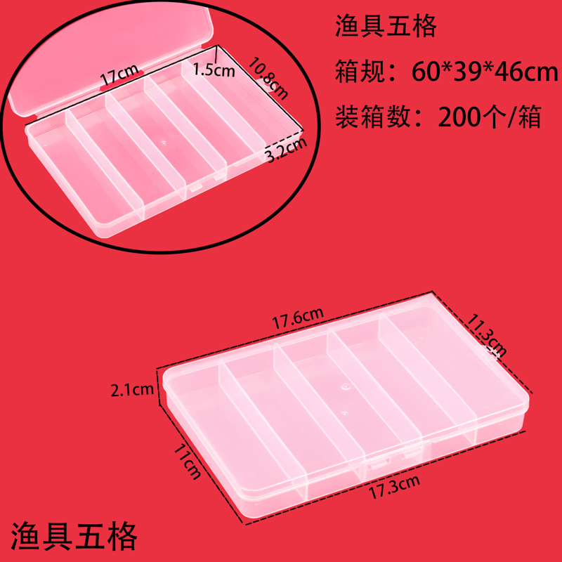 PP 투명 고정 5 그리드 보관 상자, 다양한 스타일의 플라스틱 빈 상자, 낚시 장비 액세서리, 보석 구슬 포장, 루어 상자스토어 가기