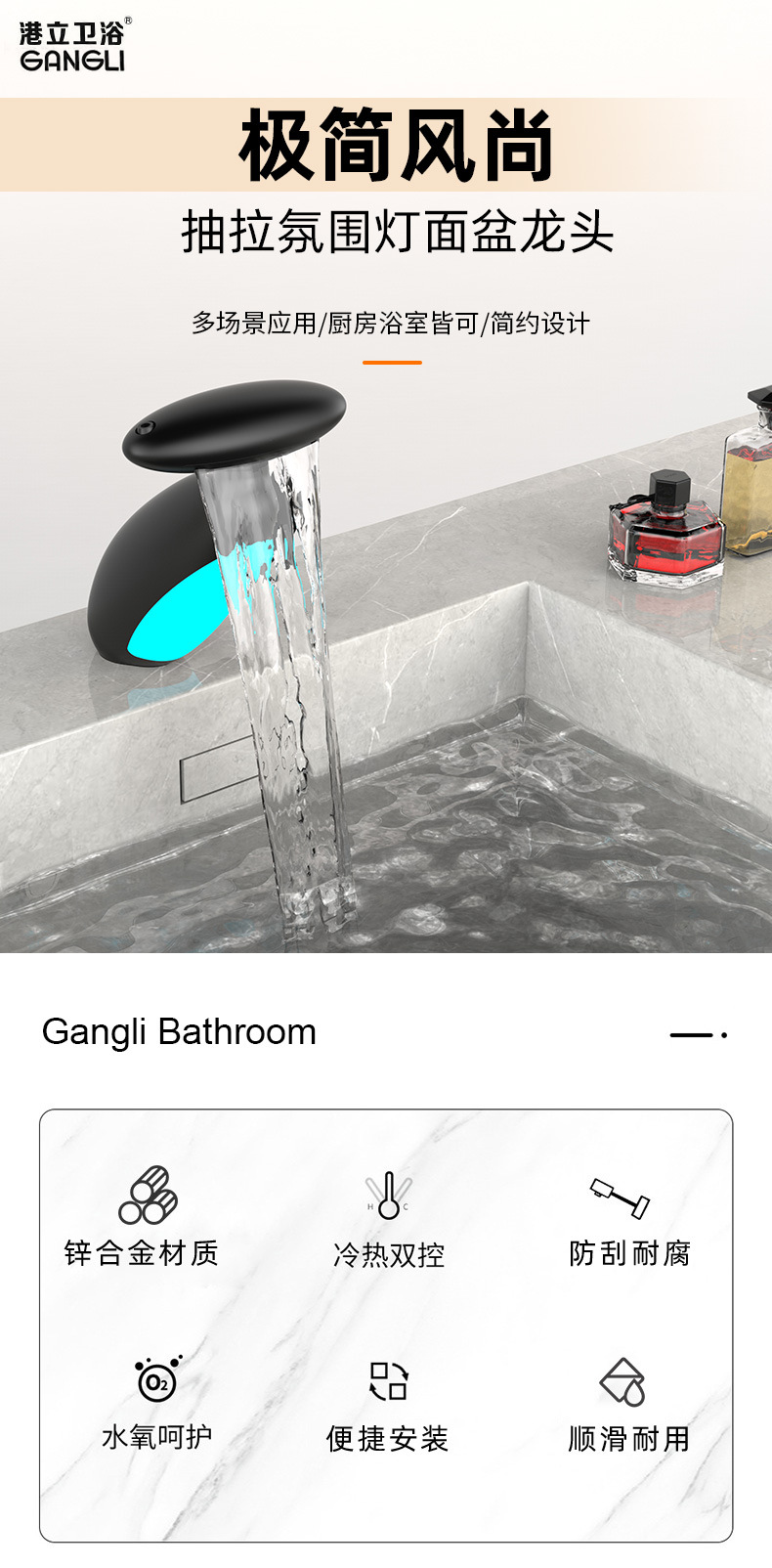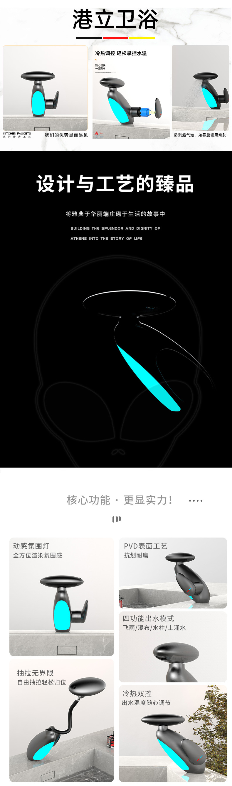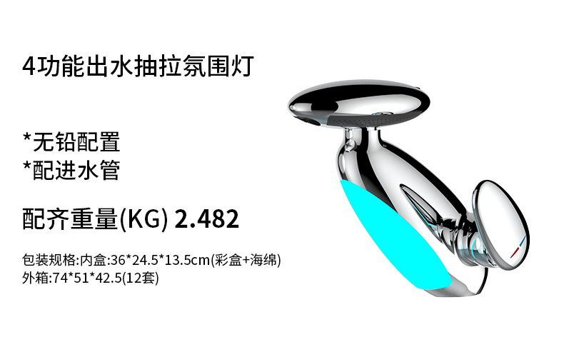 국경 간 풀 ET 대기 램프 수도꼭지 욕실 세면기 우주선 유니버설 폭포 4 단 고온 및 냉기 수도꼭지스토어 가기