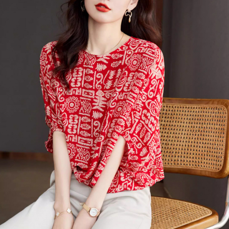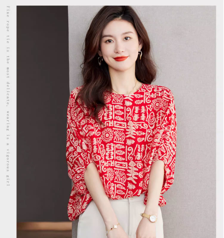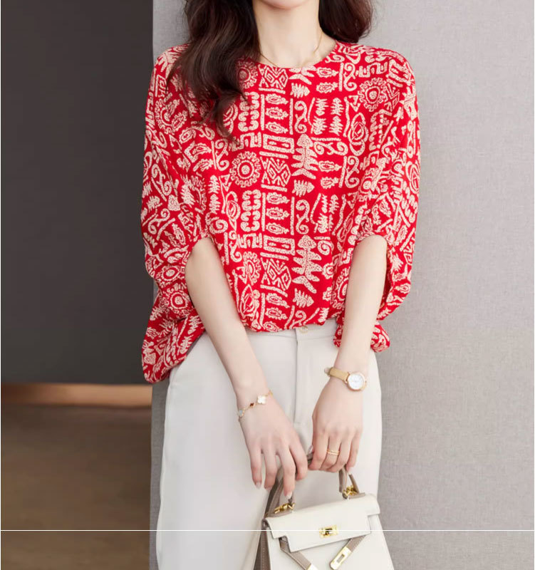 2025 새로운 연령 감소 디자인 감각 여성 쉬폰 셔츠 여름 패션 느슨한 세련된 박쥐 소매 출퇴근 용 작은 셔츠