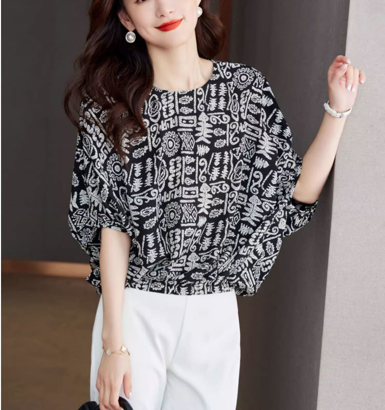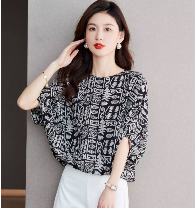 2025 새로운 연령 감소 디자인 감각 여성 쉬폰 셔츠 여름 패션 느슨한 세련된 박쥐 소매 출퇴근 용 작은 셔츠스토어 가기