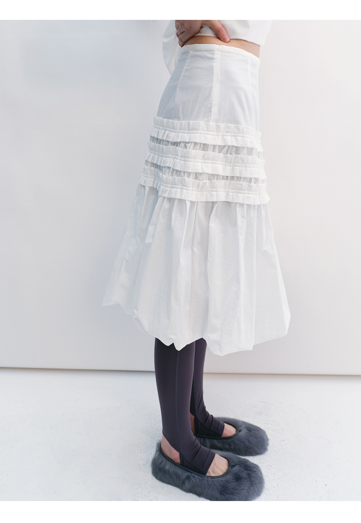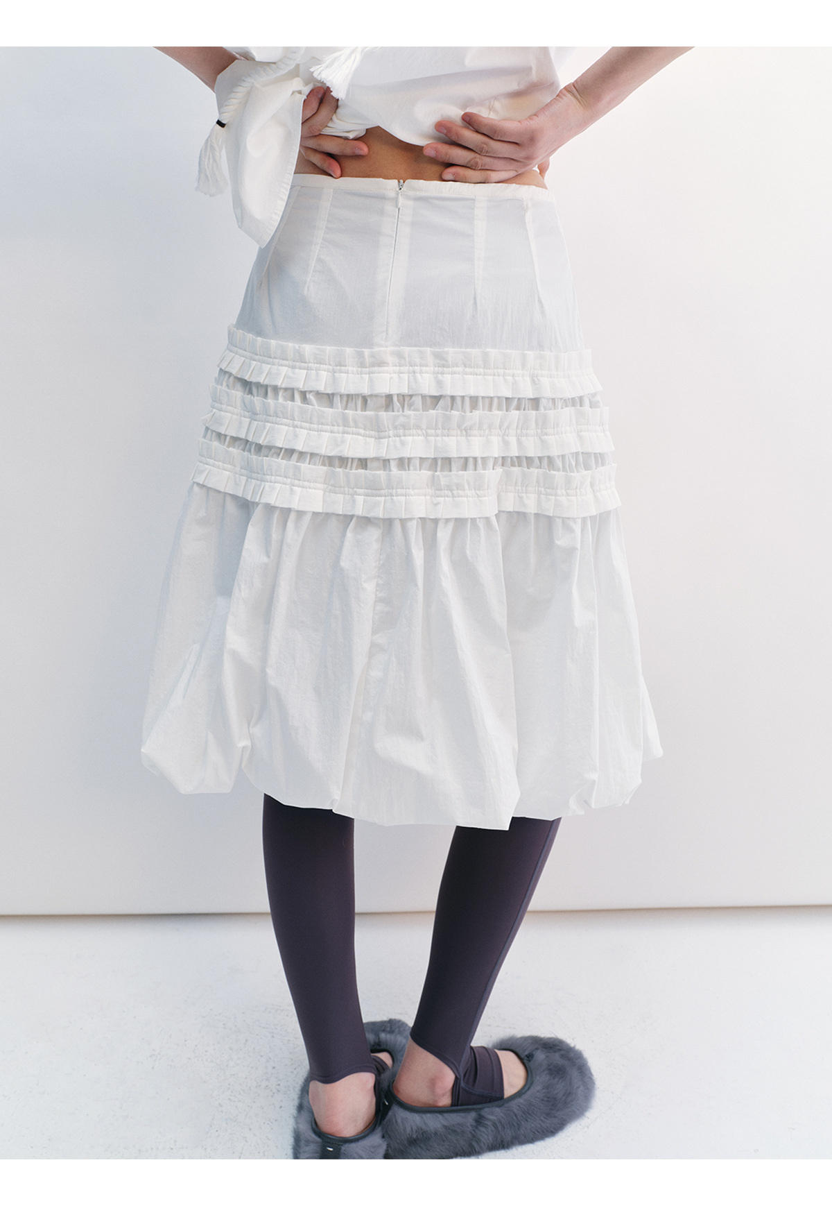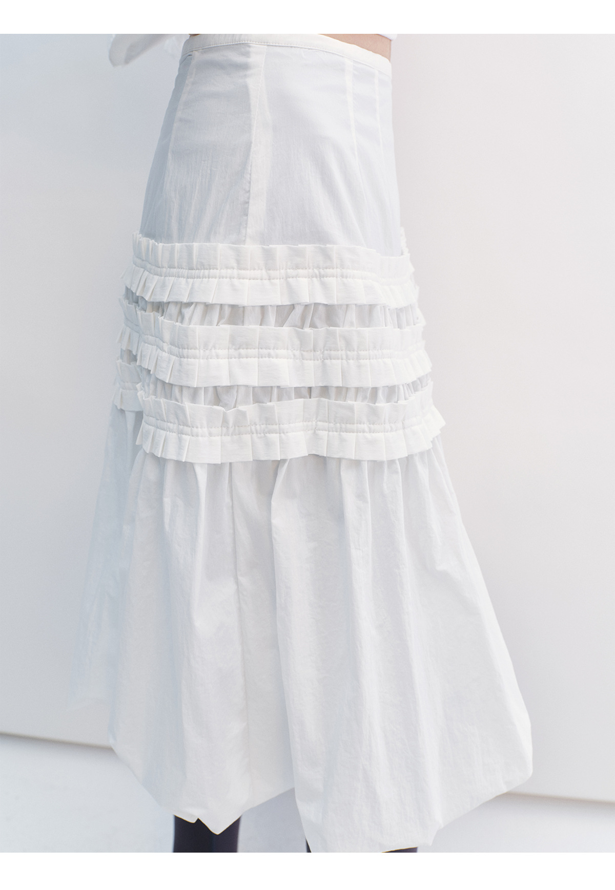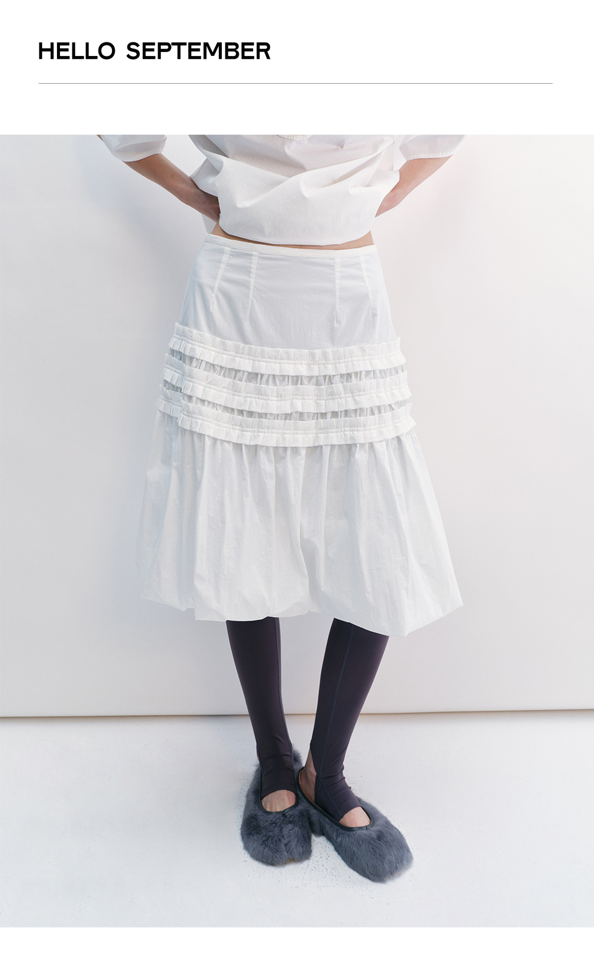 [언제 알아] 새로운 agaric 폴드 레벨 스티칭 웨이브 디자인 작은 스커트 흰색 신선한 스커트 V8640