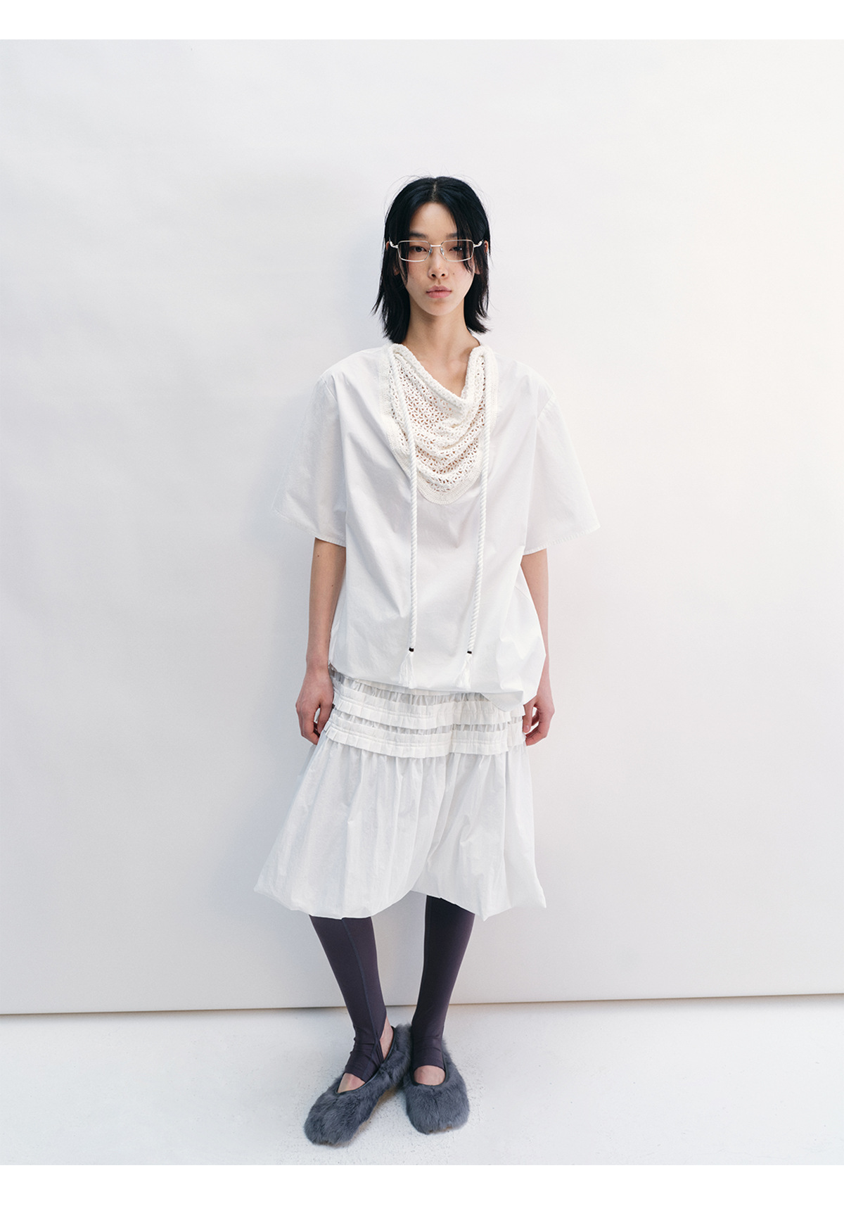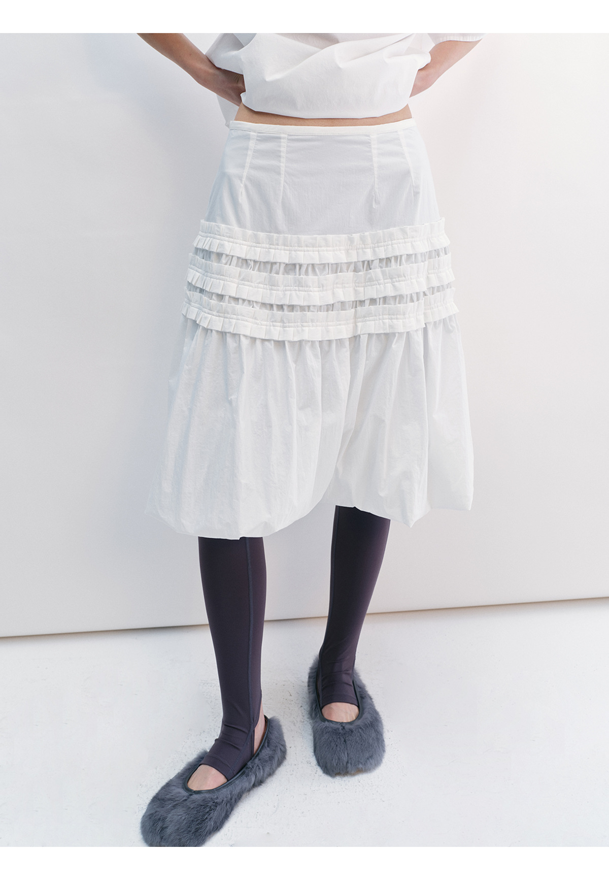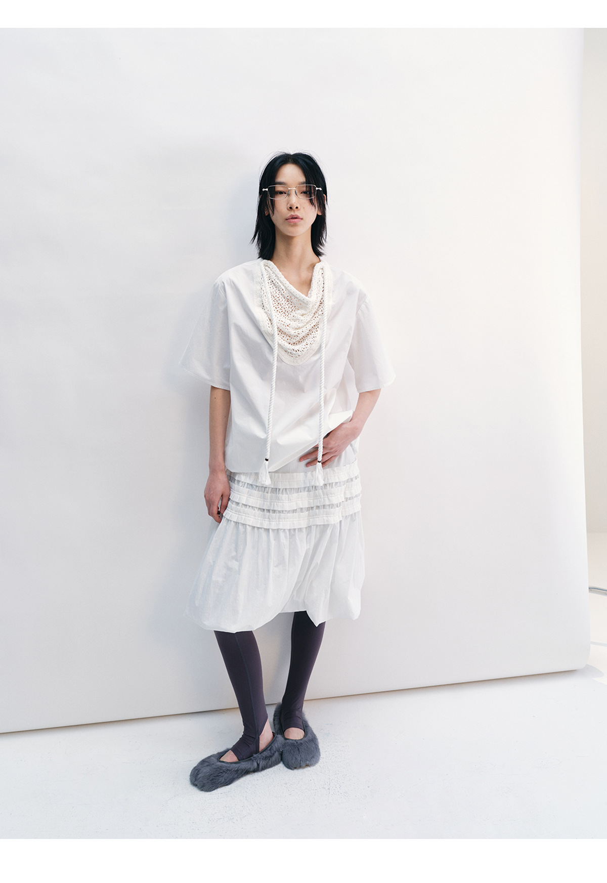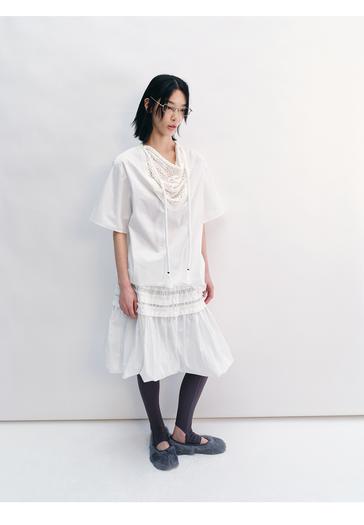[언제 알아] 새로운 agaric 폴드 레벨 스티칭 웨이브 디자인 작은 스커트 흰색 신선한 스커트 V8640