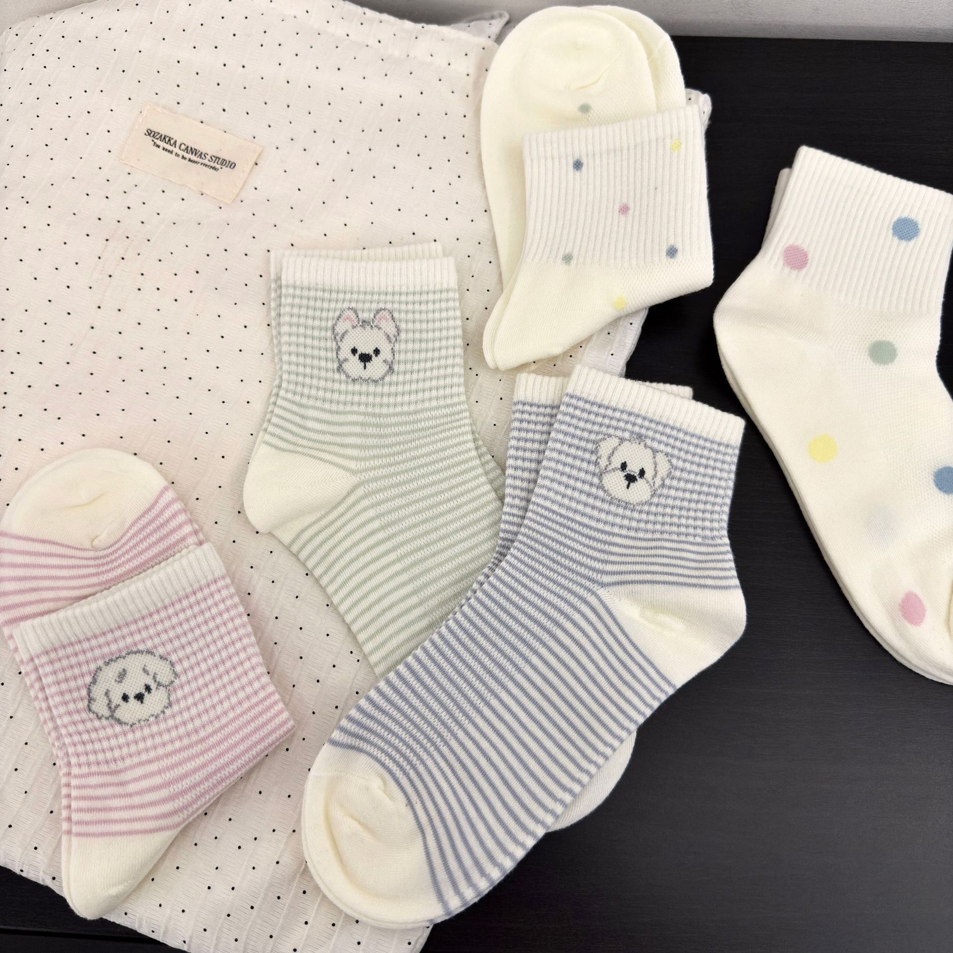 버블 오렌지 스트라이프 강아지 폴카 도트 여성용 양말 여름 메쉬 얇은 인스 타 그램 소녀 귀여운 만화 캐주얼 양말스토어 가기