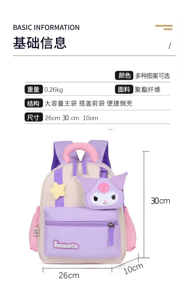 새로운 쿠로미 학교 가방 소녀 유치원 소규모 학급 중급 학생 가방 귀여운 공주 가방 소년 배낭