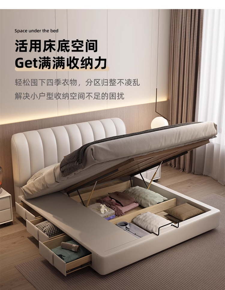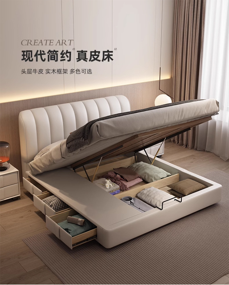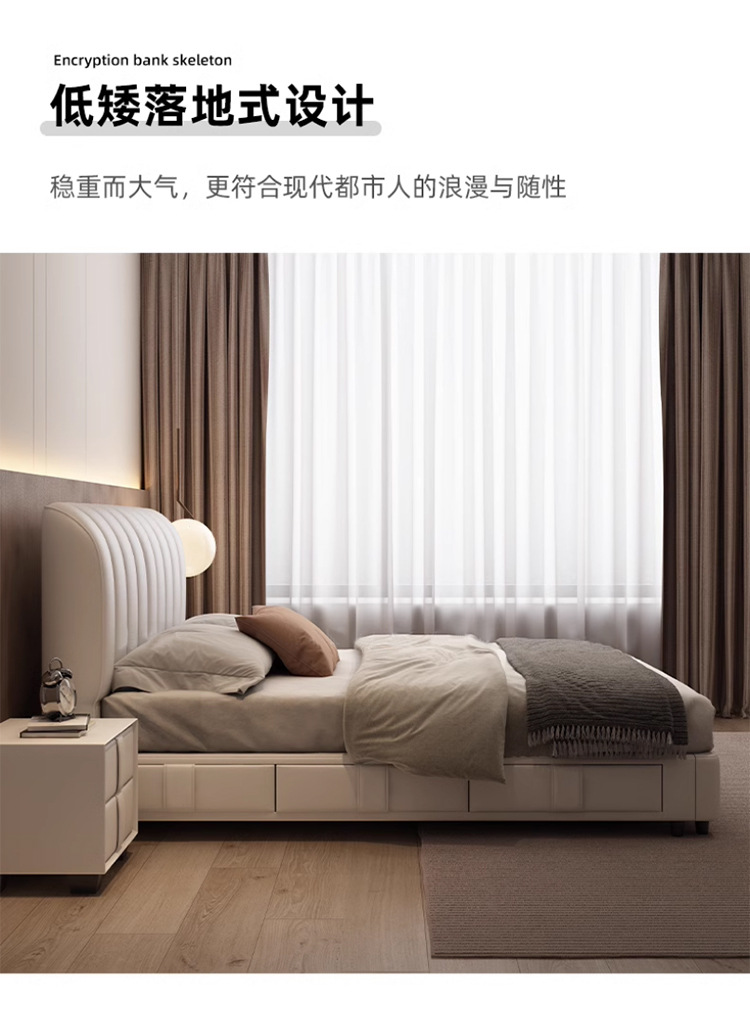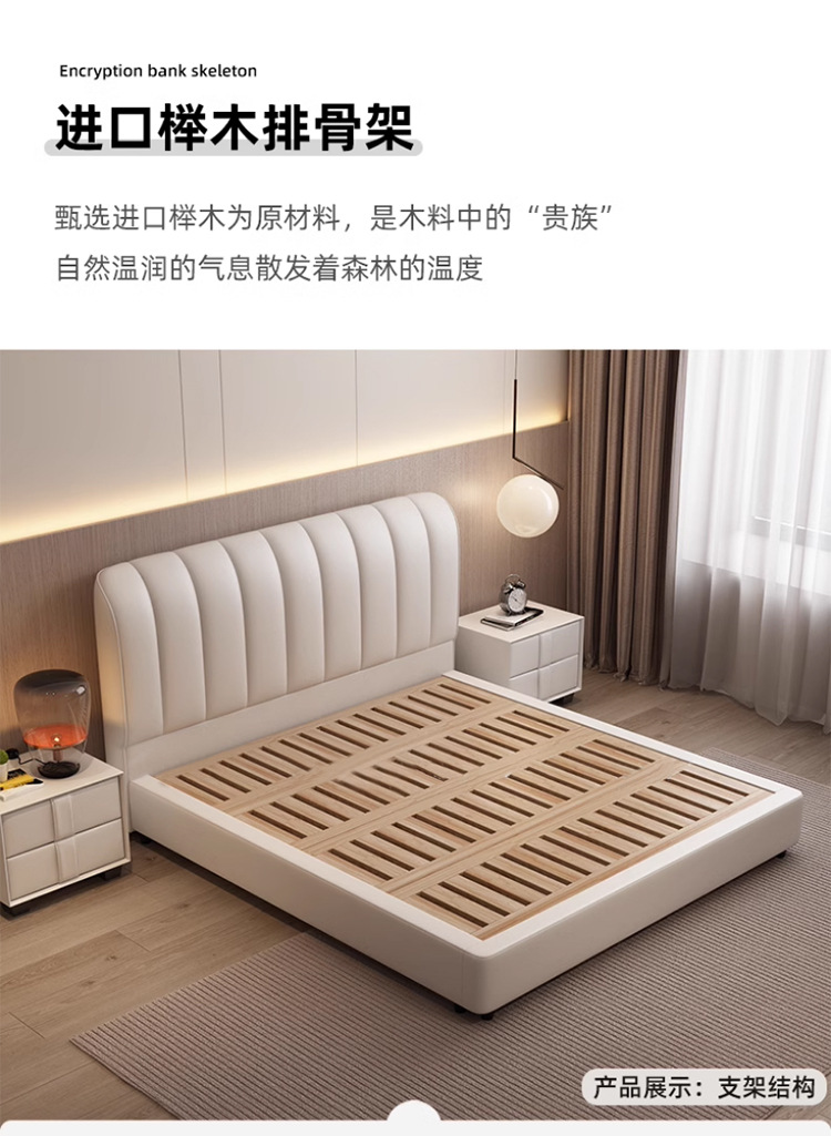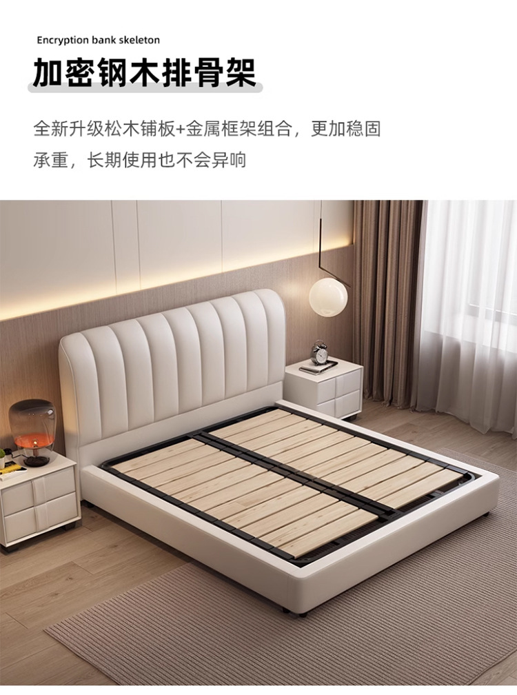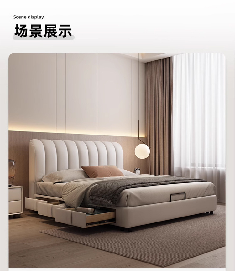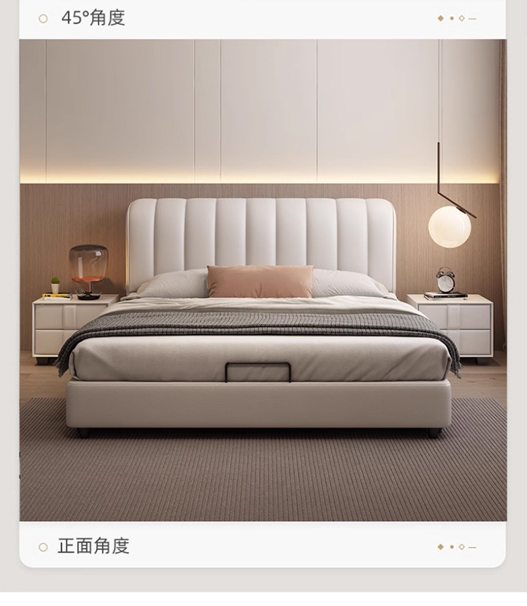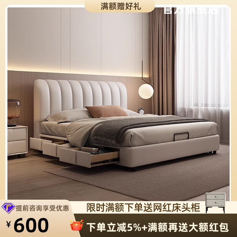 가벼운 고급 이탈리아 미니멀리스트 분위기 부드러운 가방 가죽 침대 웨딩 침대 쌀 현대 간단한 더블 침대 마스터 침실 하이 엔드 가죽 침대스토어 가기