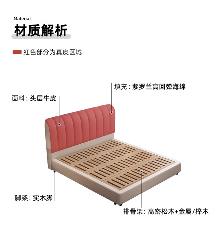 • 1층 가죽 침대 + 천연 라텍스 매트리스 [15점 철골 목재 프레임]