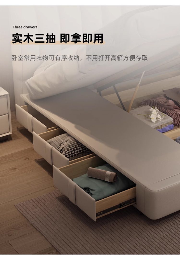 • 1층 가죽 침대 + 천연 라텍스 매트리스 + 캐비닛*1 [15점 철제 목재 프레임]