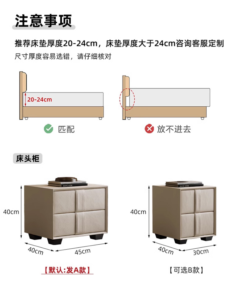 • 가죽 침대[15점 철골 목재 프레임] + 천연 라텍스 매트리스 + 캐비닛*1