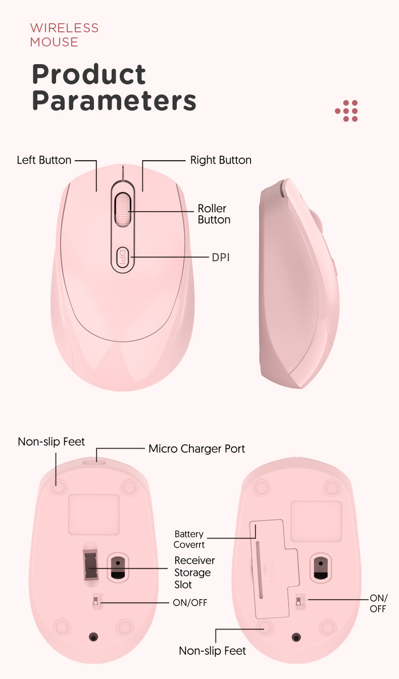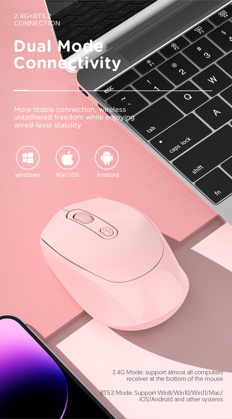 • 256 충전 듀얼 모드(2.4G+Bluetooth)---핑크