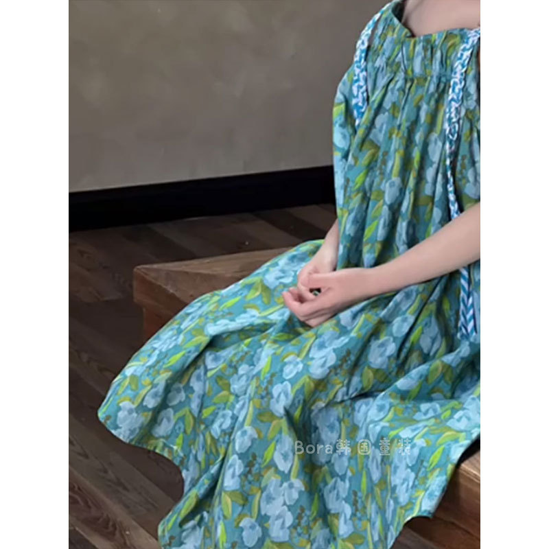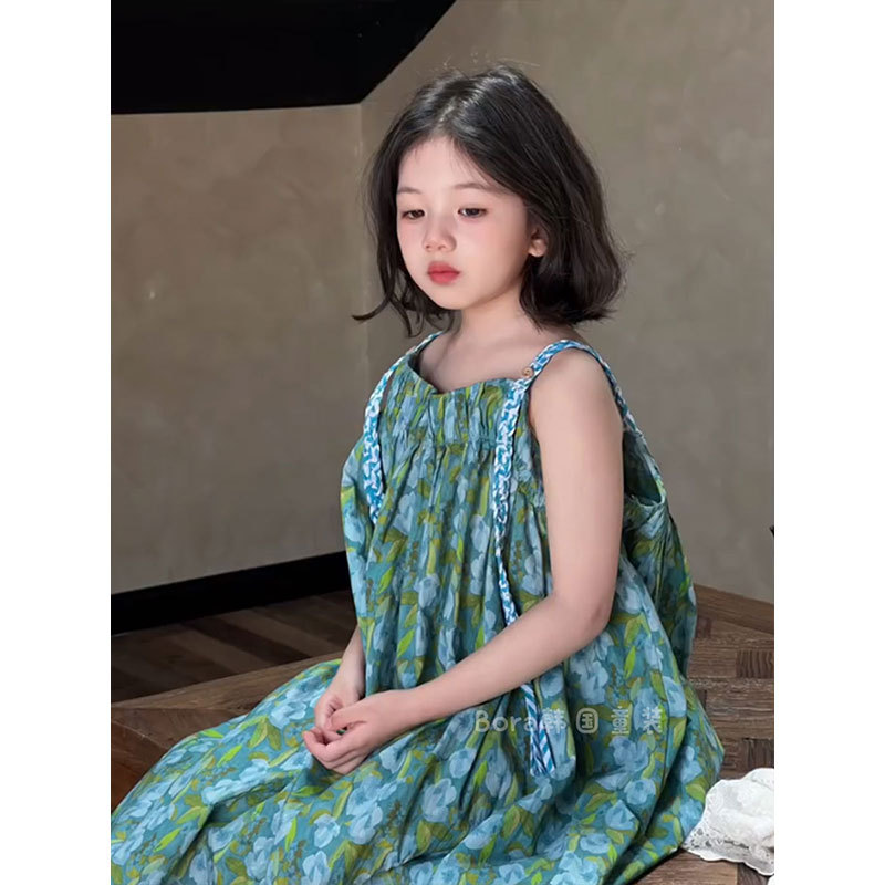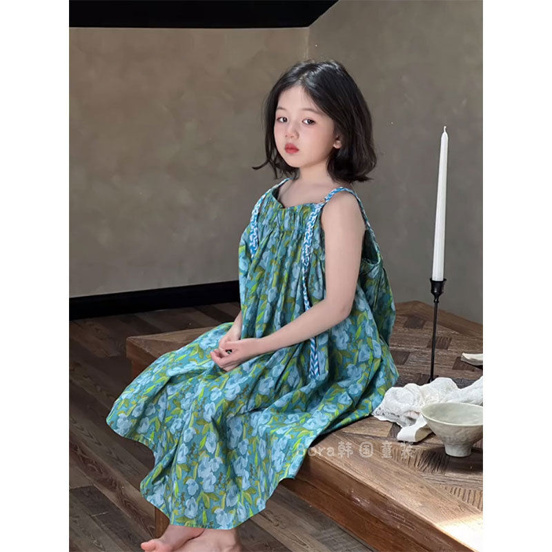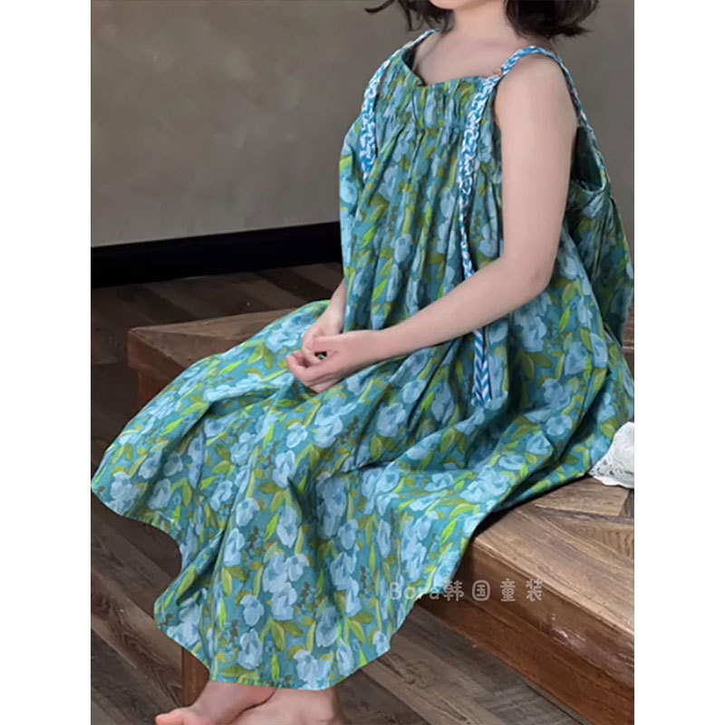소녀 원피스 슬링 2025 새로운 여름 큰 어린이 모리 꽃 민소매 긴 원피스 어린이 슈퍼 니스 원피스스토어 가기