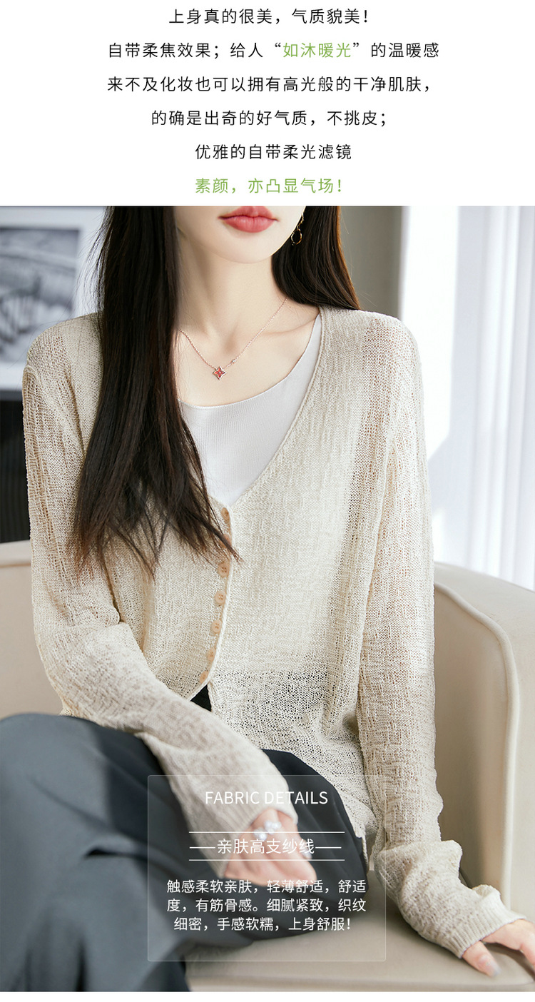 중공 질감 통기성 모양 슬리밍 선 스크린 카디건 여름 패션 한국식 게으른 V 넥 니트 에어컨 셔츠스토어 가기
