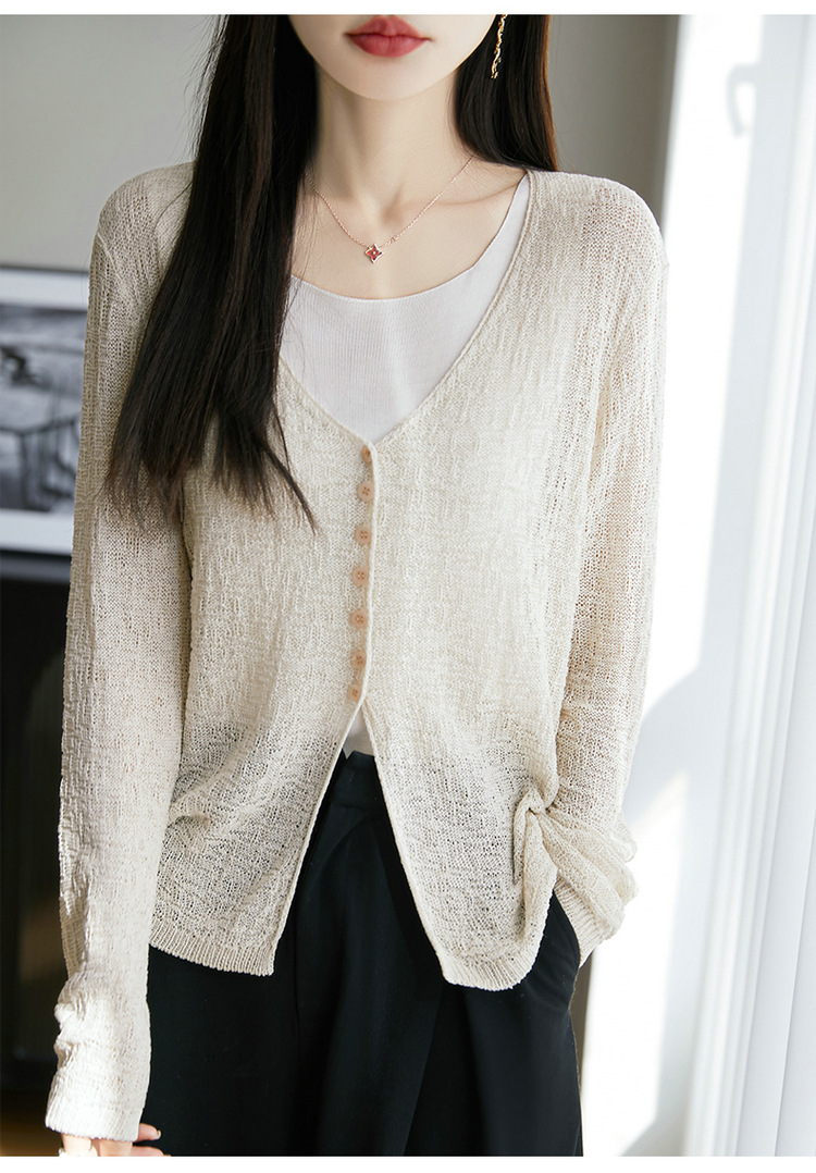 중공 질감 통기성 모양 슬리밍 선 스크린 카디건 여름 패션 한국식 게으른 V 넥 니트 에어컨 셔츠