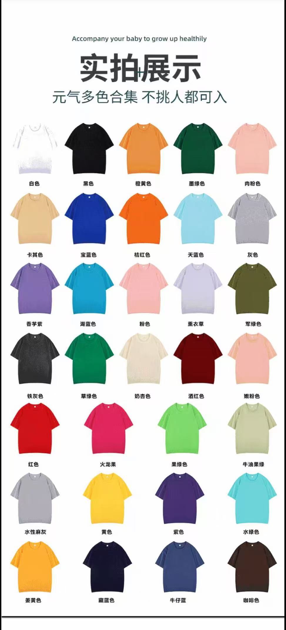 200g 순수 코튼 어린이 반팔 티셔츠 부모-자식 느슨한 캐주얼 유행 라운드 넥 소년 솔리드 컬러 다목적 티셔츠 정원 유니폼스토어 가기