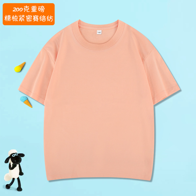 200g 순수 코튼 어린이 반팔 티셔츠 부모-자식 느슨한 캐주얼 유행 라운드 넥 소년 솔리드 컬러 다목적 티셔츠 정원 유니폼
