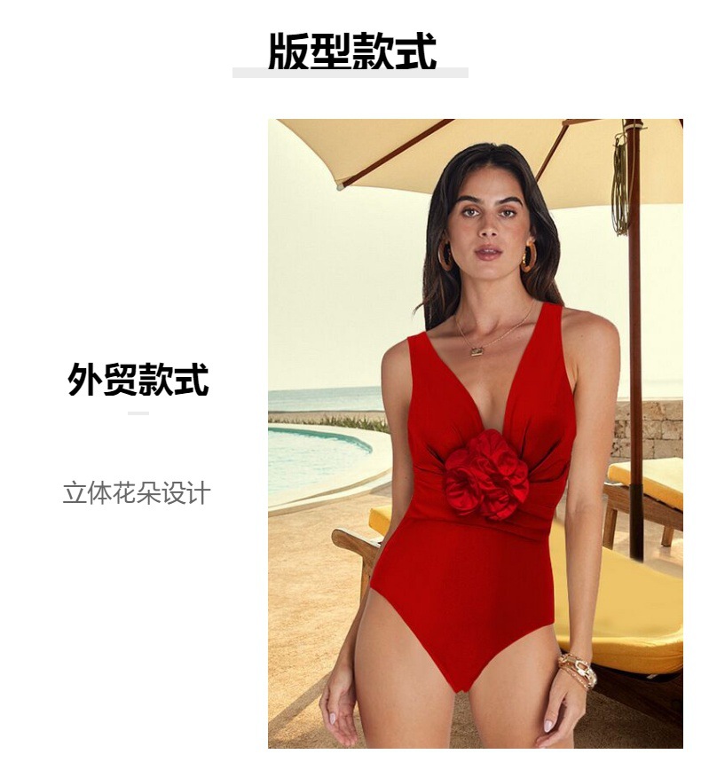 2025 유럽과 미국의 새로운 원피스 수영복 여성 대외 무역 입체 꽃 깊은 V 섹시한 수영복 세트 국경 간 핫 세일