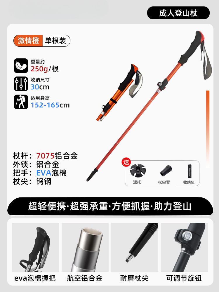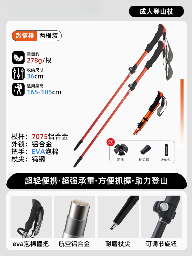 • 2팩 - 접이식 스틱 [높이 152-165] - 오렌지