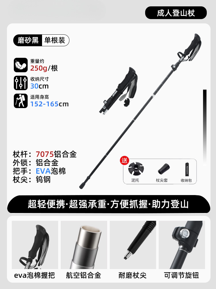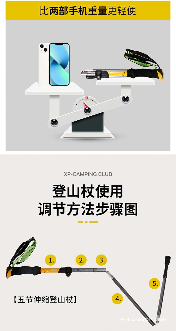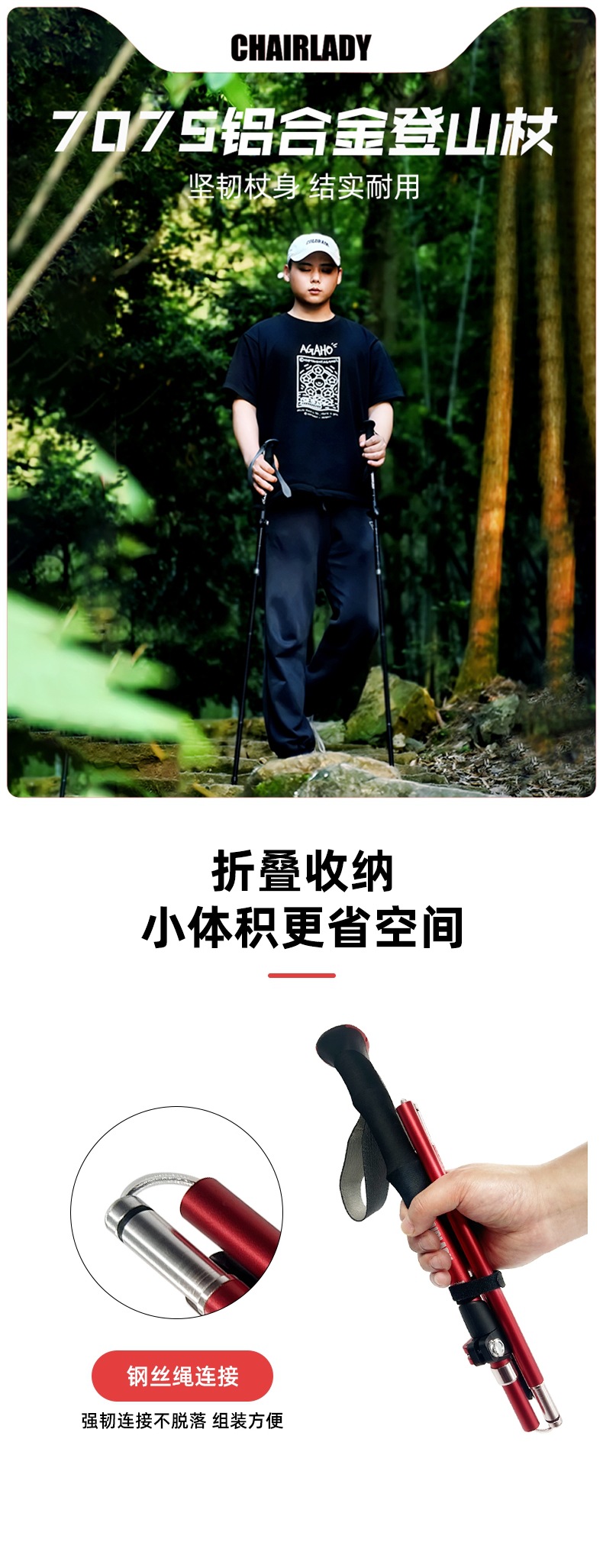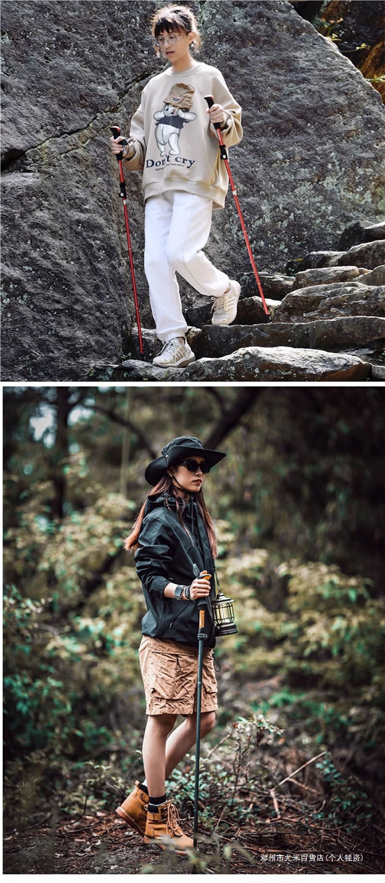 Yumi 경량 접이식 트레킹 스틱 야외 하이킹 휴대용 어린이 및 여성 미니 탄소 지팡이 등산 장비스토어 가기