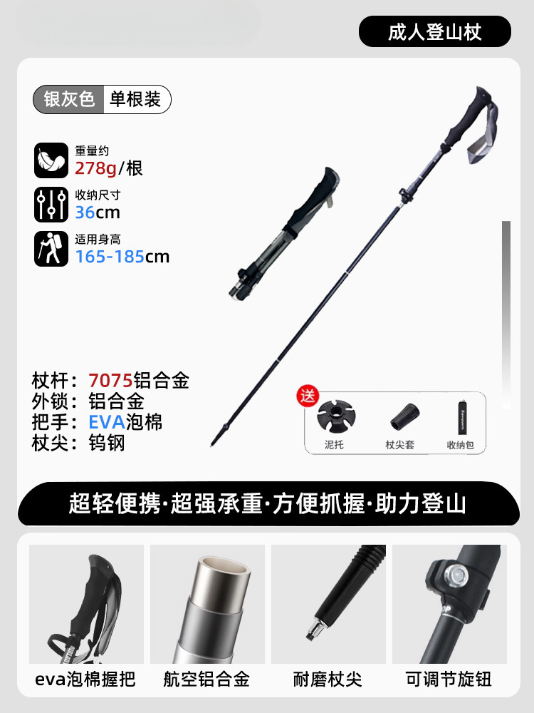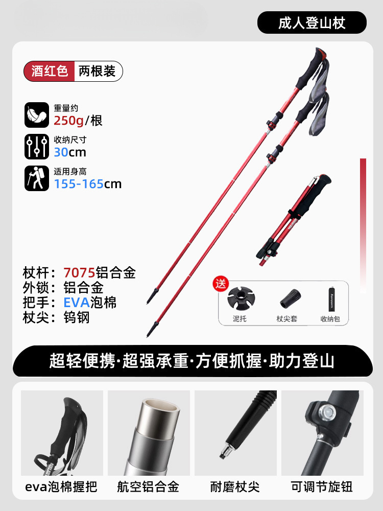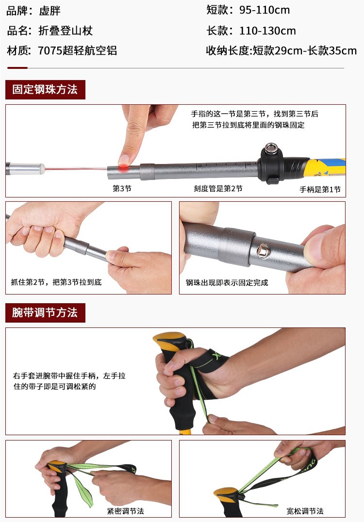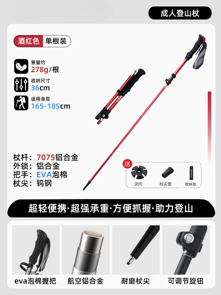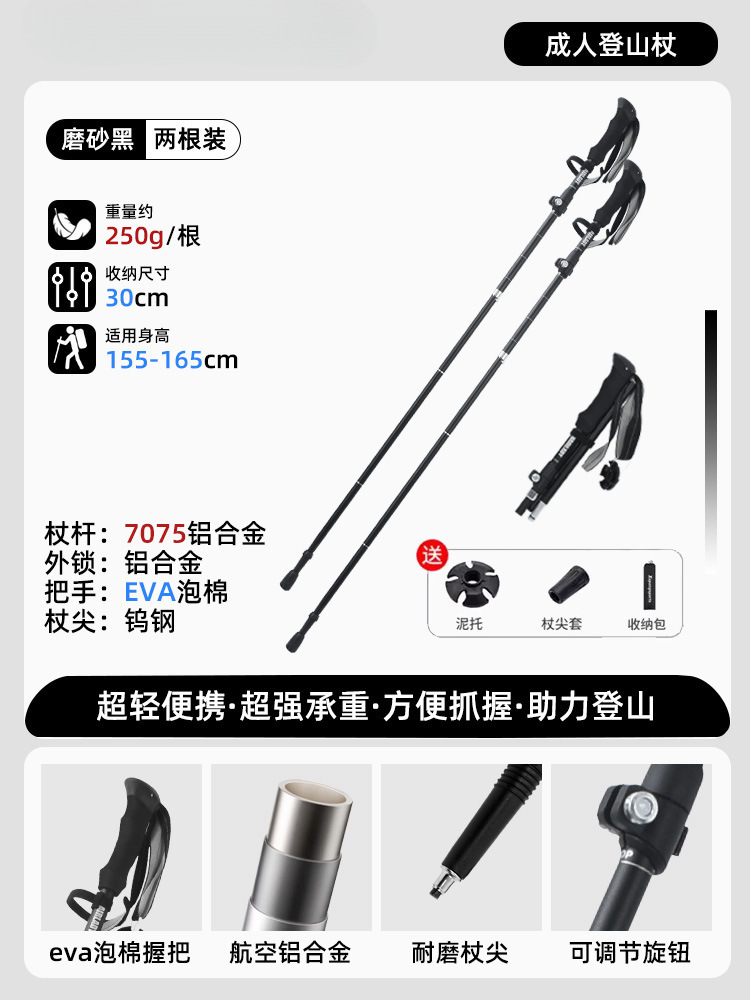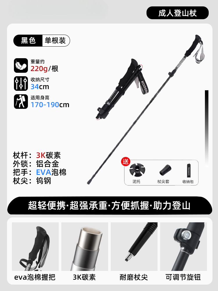 Yumi 경량 접이식 트레킹 스틱 야외 하이킹 휴대용 어린이 및 여성 미니 탄소 지팡이 등산 장비스토어 가기