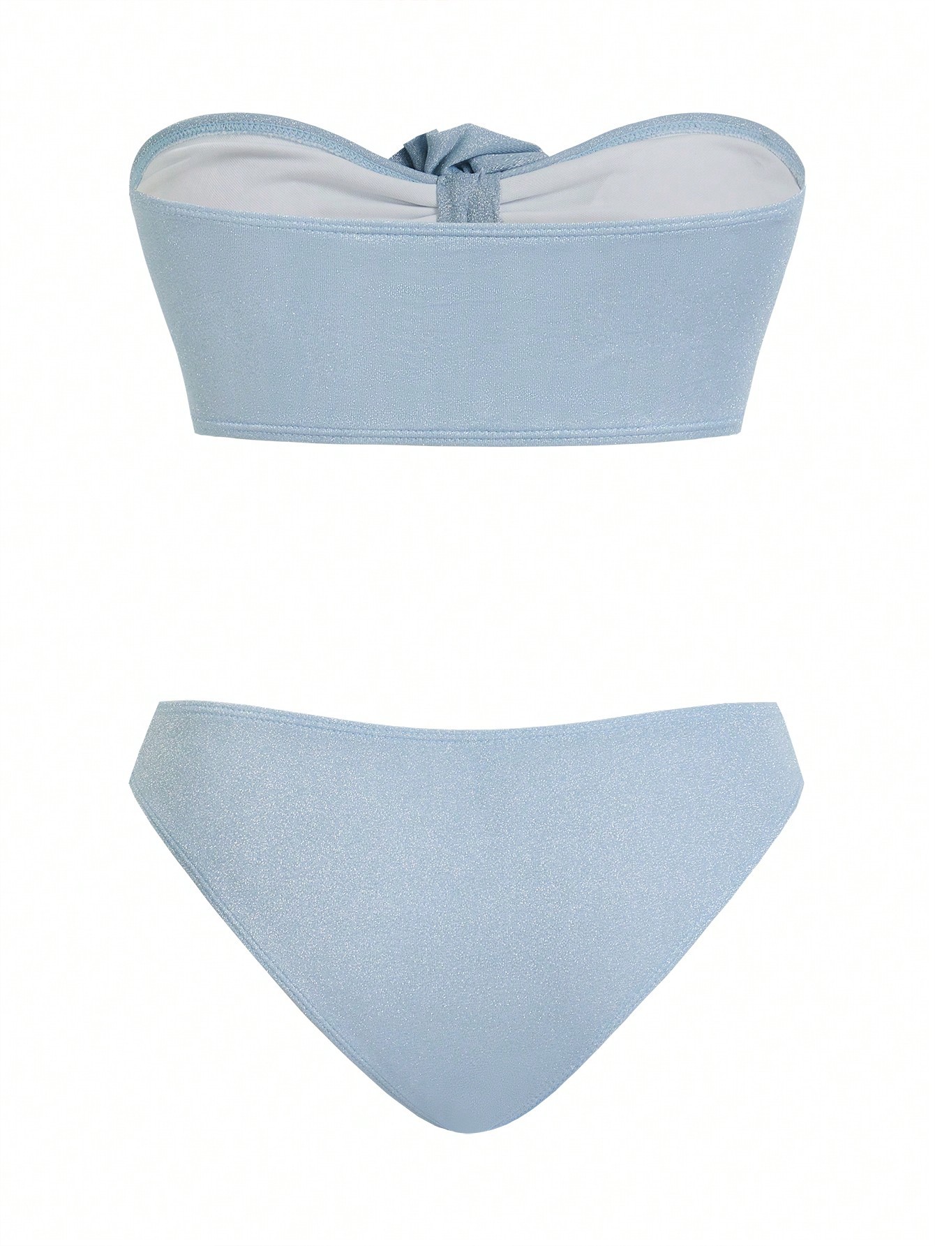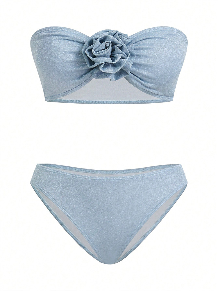 유럽과 미국의 새로운 슈트 스플릿 수영복 여성 솔리드 컬러 튜브 탑 섹시한 비키니 수영복 3 피스 스플릿 수영복