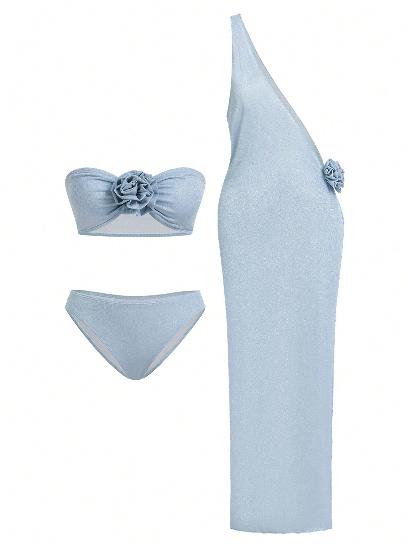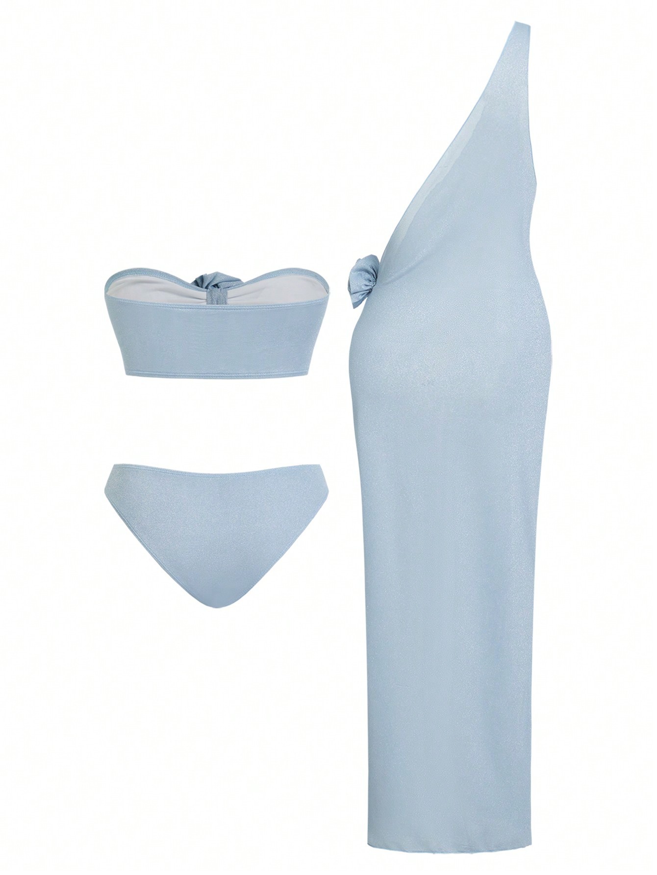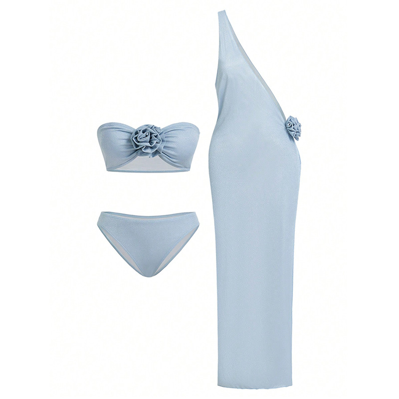 유럽과 미국의 새로운 슈트 스플릿 수영복 여성 솔리드 컬러 튜브 탑 섹시한 비키니 수영복 3 피스 스플릿 수영복스토어 가기