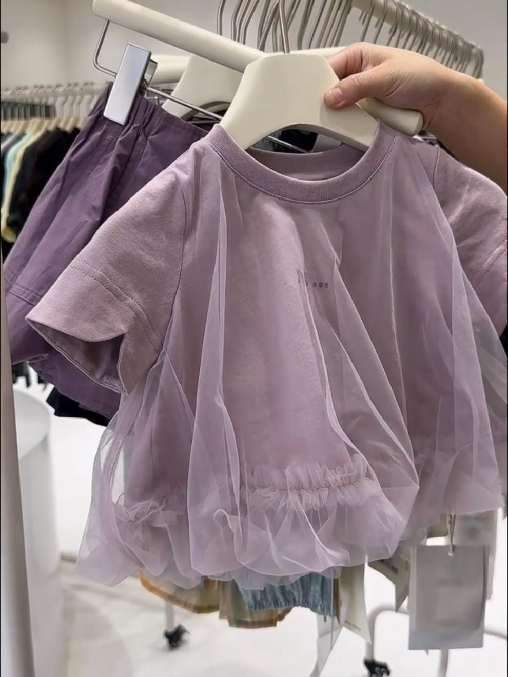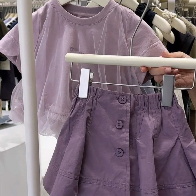 한국식 소녀 세트 유행 쉬폰 티셔츠 어린이 단색 스커트 투피스 세트 조수 0121A015스토어 가기