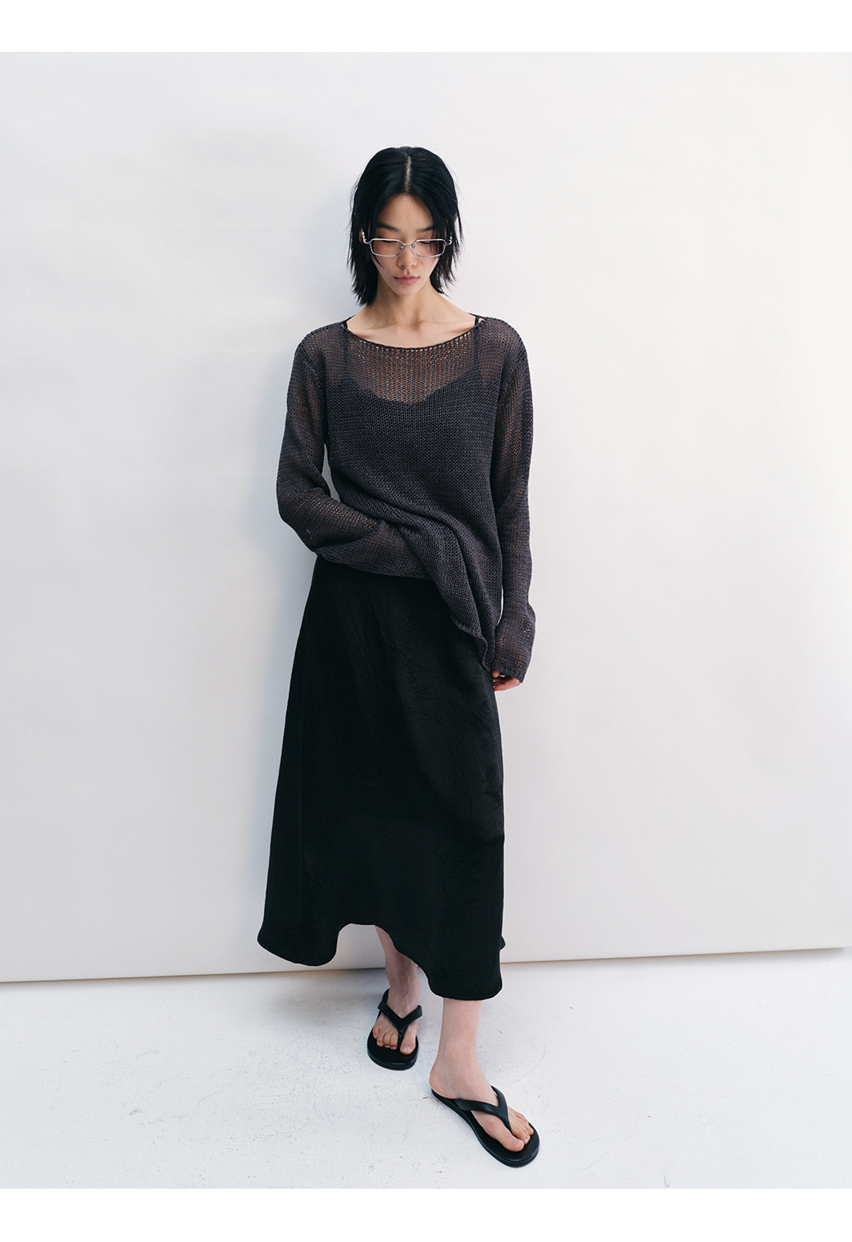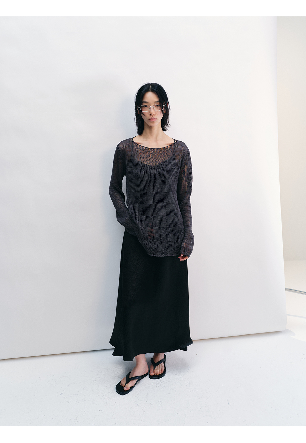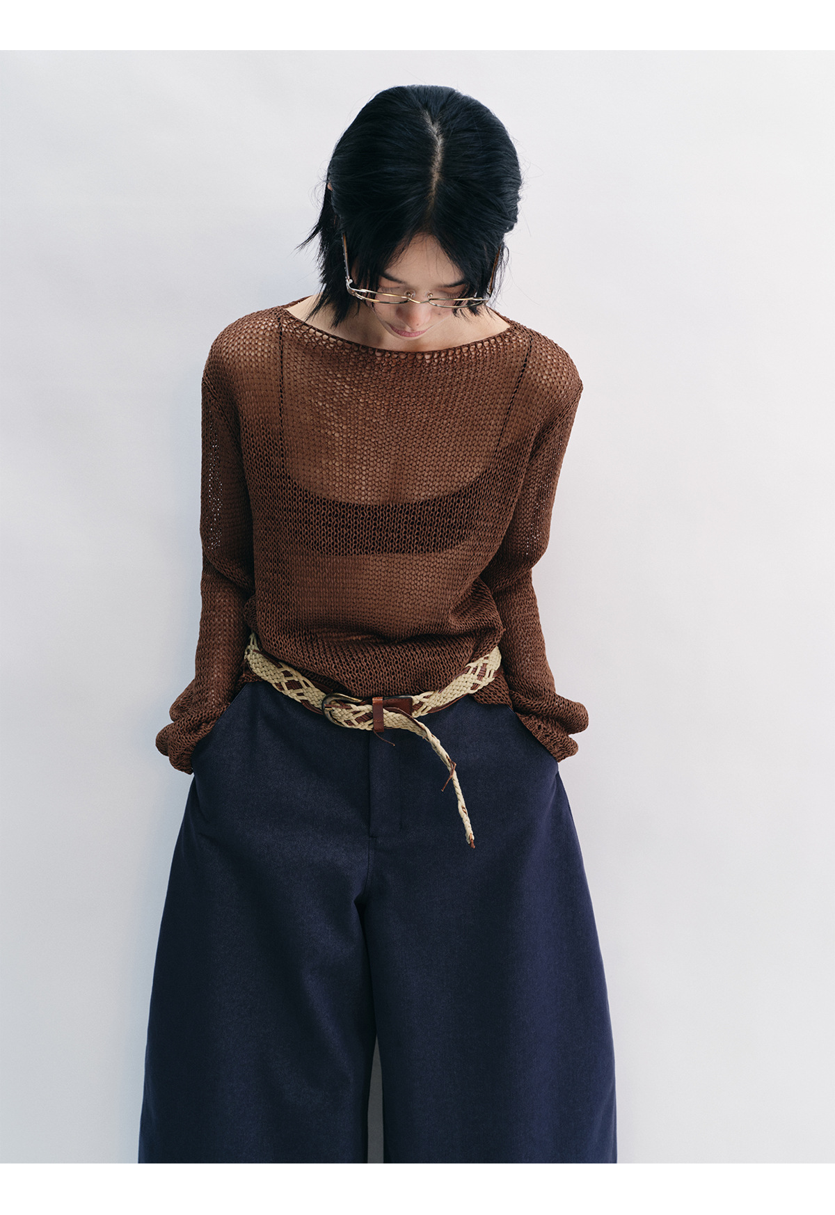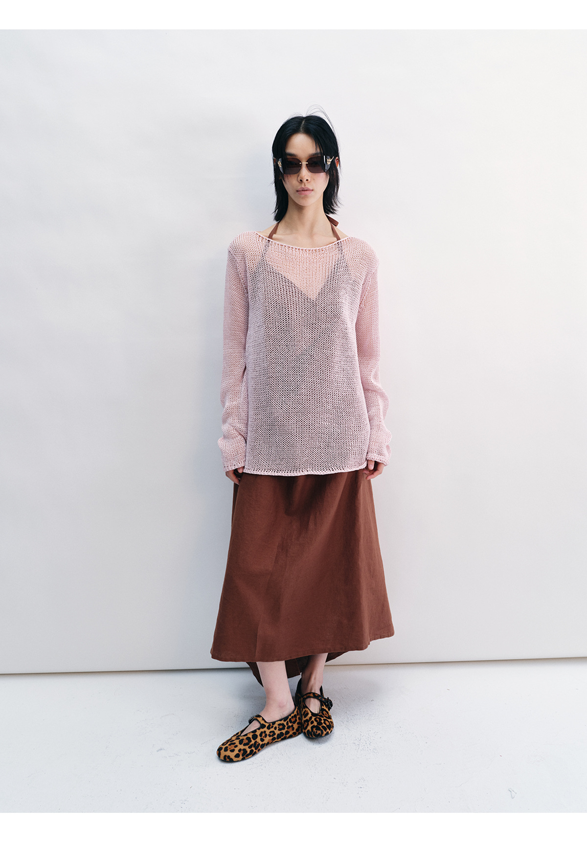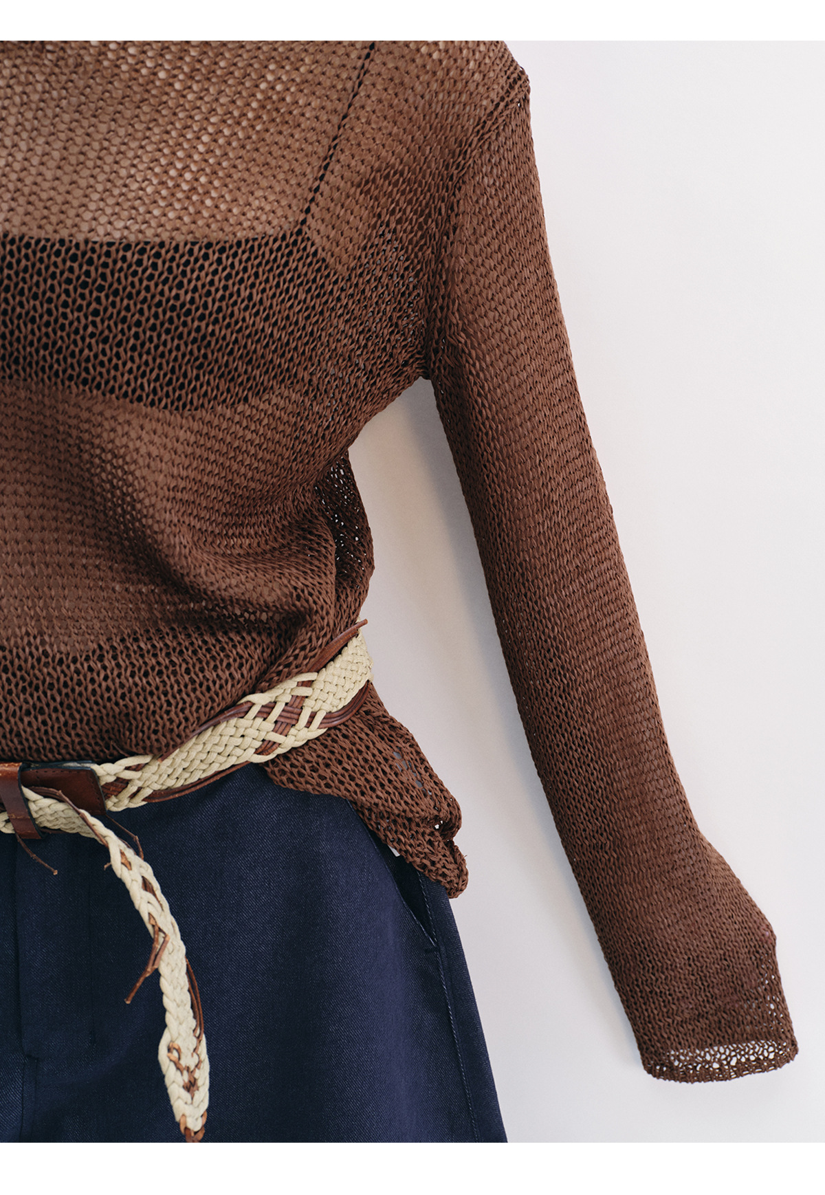 [Shushuang] 새로운 피부 친화적 인 밀짚 원사 니트 할로우 신선한 오버레이 블라우스 크루 넥 긴 소매 재킷 여성 V8704