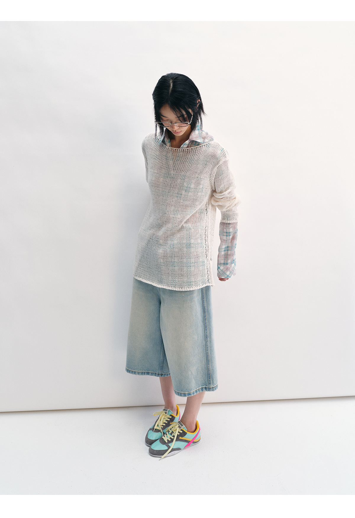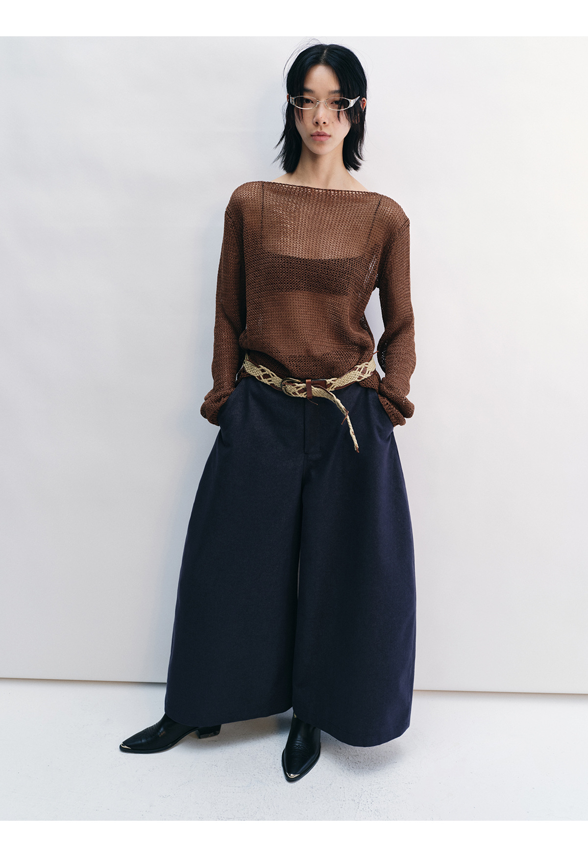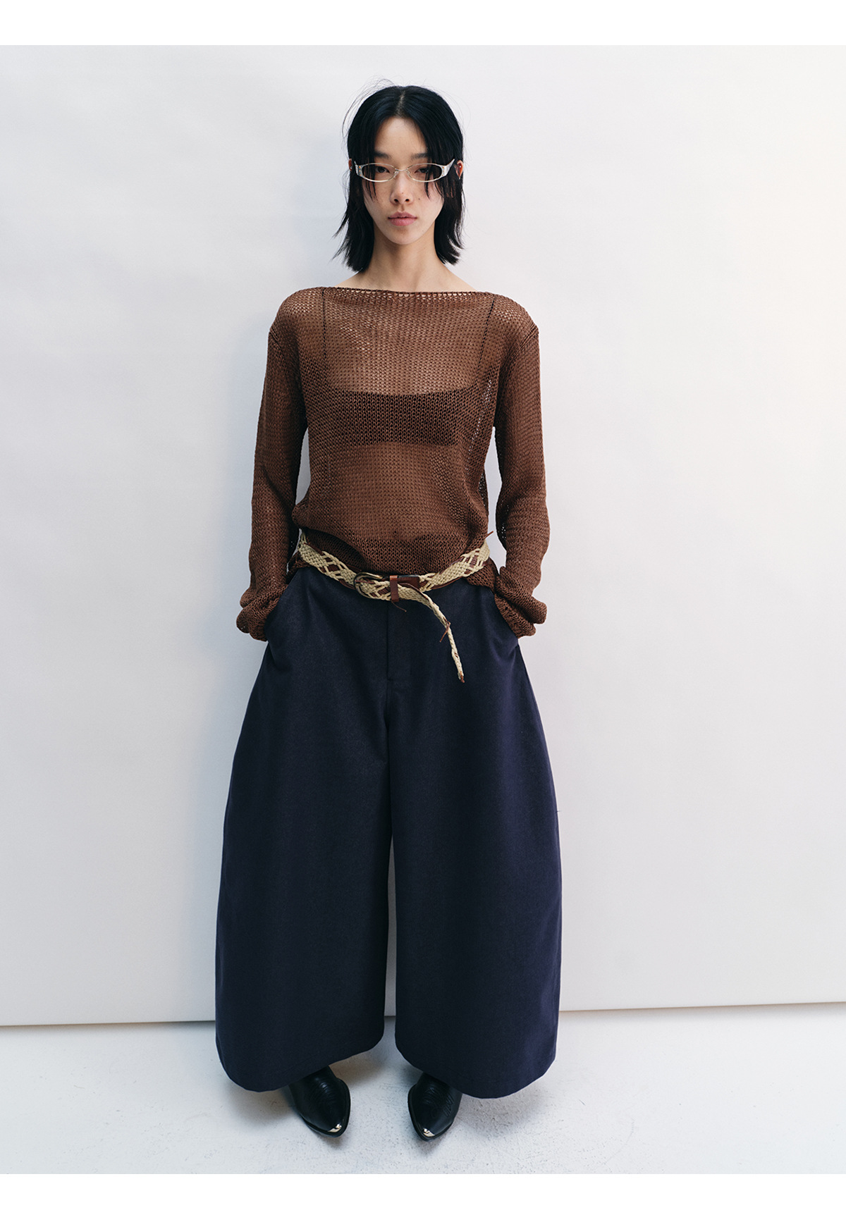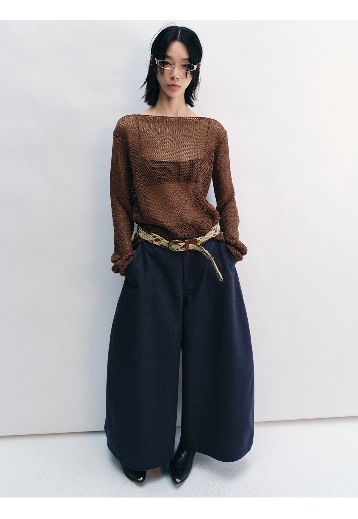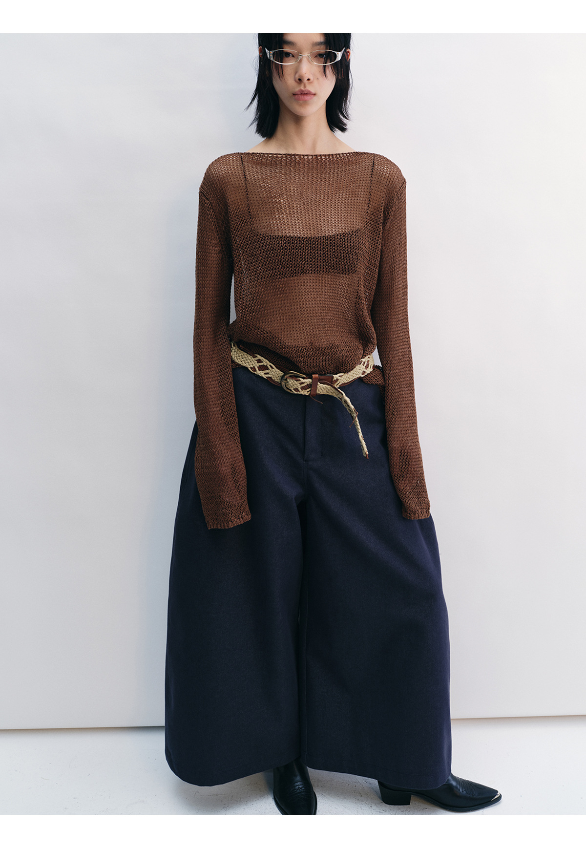[Shushuang] 새로운 피부 친화적 인 밀짚 원사 니트 할로우 신선한 오버레이 블라우스 크루 넥 긴 소매 재킷 여성 V8704