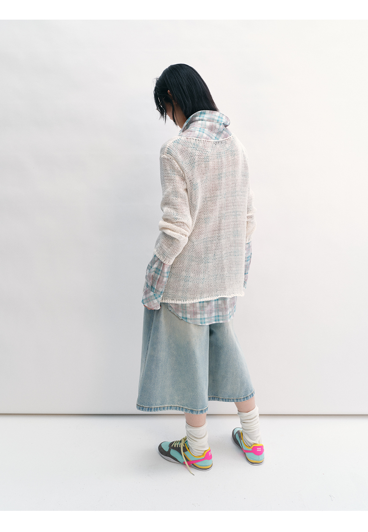 [Shushuang] 새로운 피부 친화적 인 밀짚 원사 니트 할로우 신선한 오버레이 블라우스 크루 넥 긴 소매 재킷 여성 V8704스토어 가기