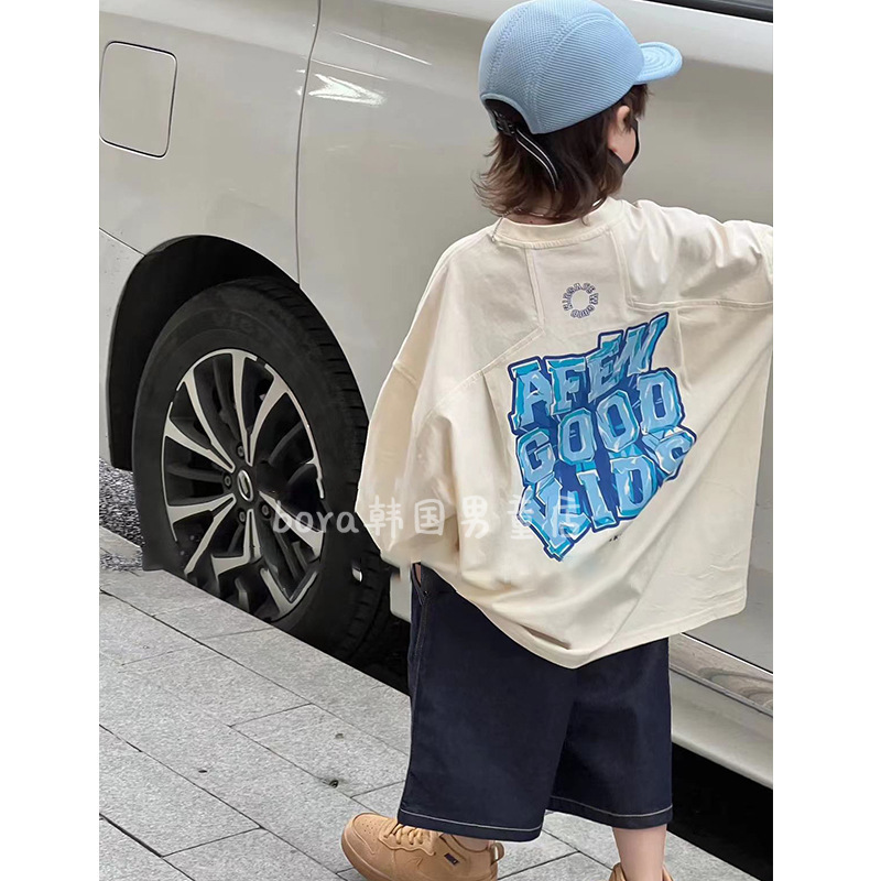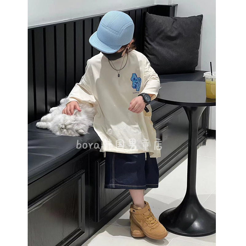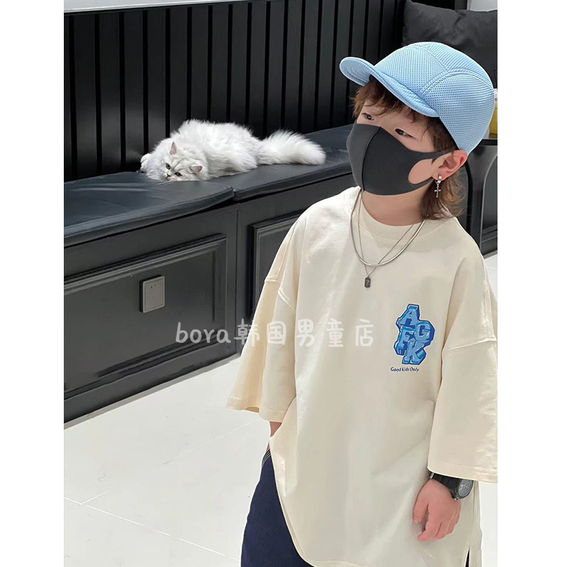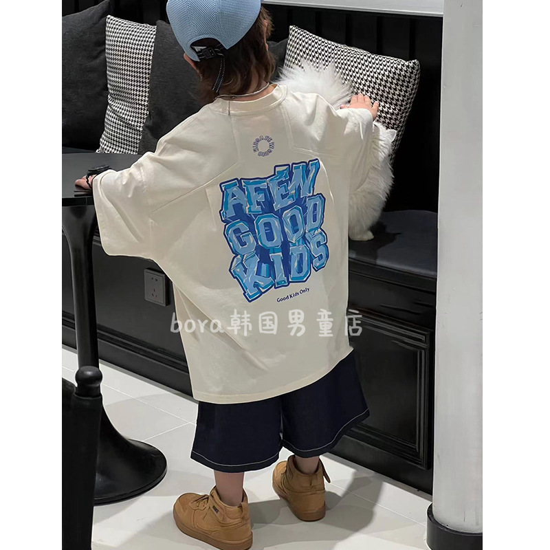 소년 티셔츠 반팔 봄과 여름 2025 새로운 어린이 트렌디 브랜드 퓨어 코튼 탑 걸스 루즈 얇은 티셔츠 6스토어 가기
