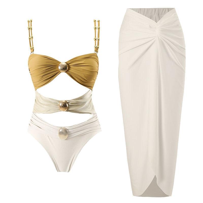 2025 유럽과 미국의 새로운 도착 2 피스 비키니 수영복 여성용 꽉 조이는 나일론 스커트 수영복 세트