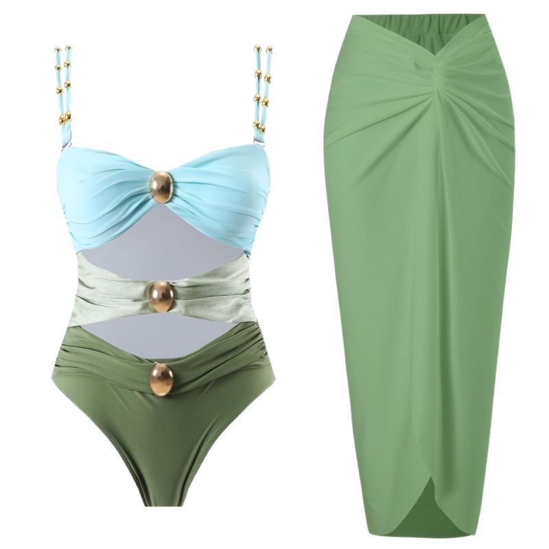 2025 유럽과 미국의 새로운 도착 2 피스 비키니 수영복 여성용 꽉 조이는 나일론 스커트 수영복 세트스토어 가기