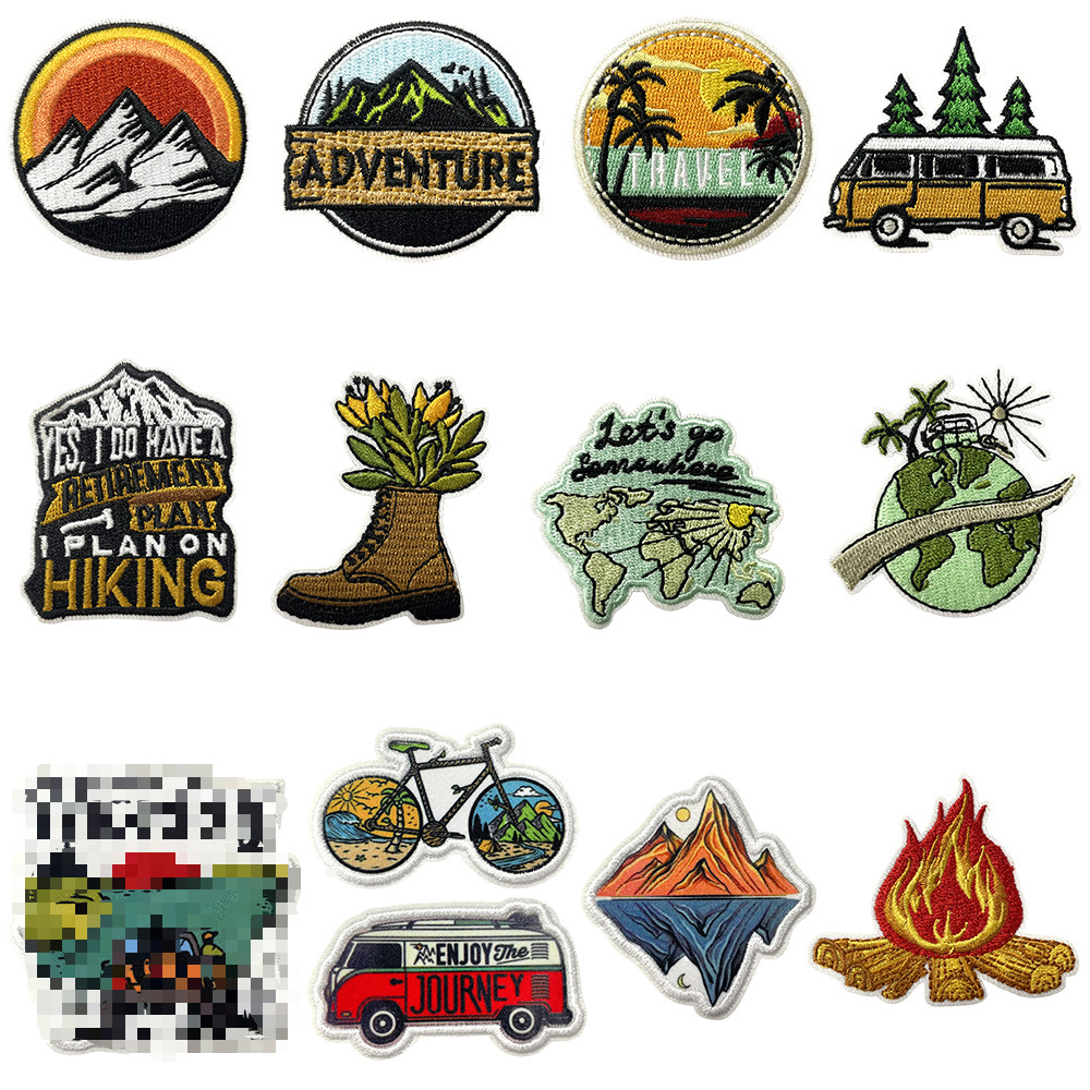새로운 여행 야외 캠핑 등산 스포츠 오프로드 차량 캠프파이어 자수 패치 세트