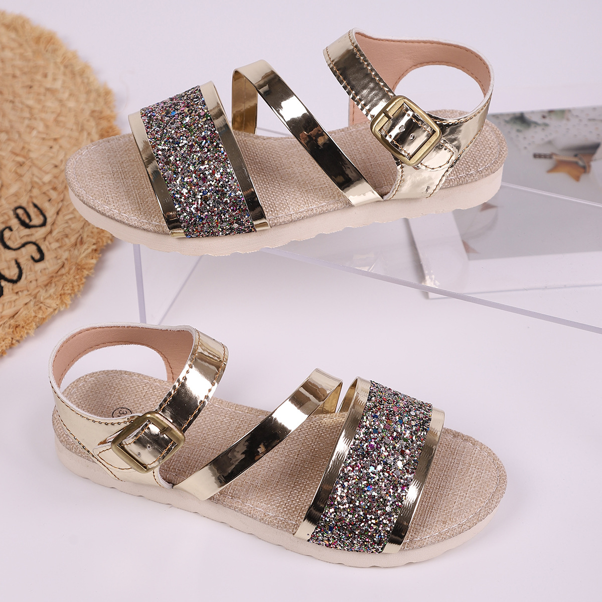 국경 간 유럽과 미국의 플러스 사이즈 여름 새로운 도착 패션 한 단어 버클 스트랩 플랫폼 샌들 올 매치 편안한 여성용 샌들