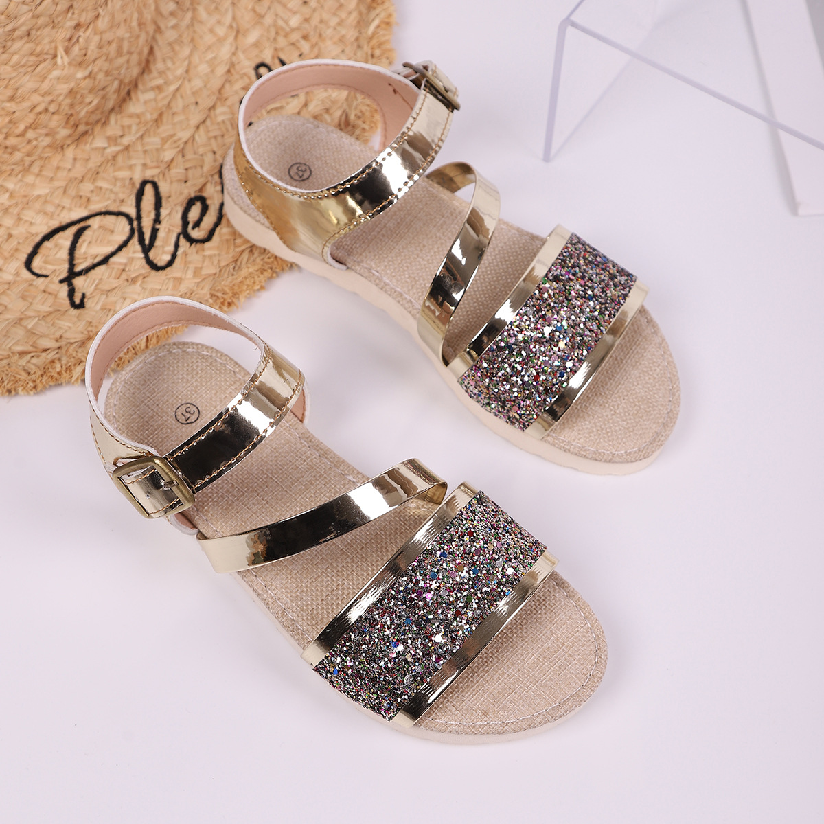국경 간 유럽과 미국의 플러스 사이즈 여름 새로운 도착 패션 한 단어 버클 스트랩 플랫폼 샌들 올 매치 편안한 여성용 샌들스토어 가기